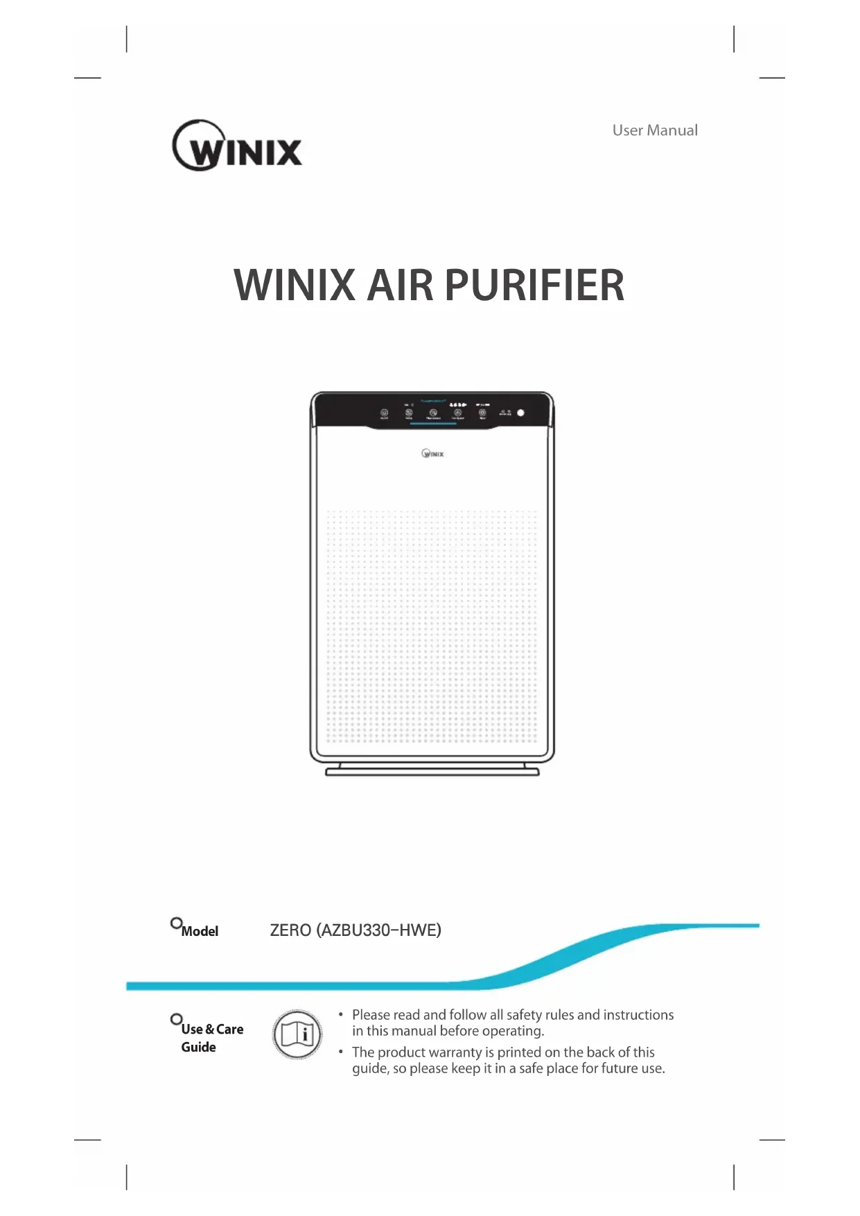 Zero N - Purificateur d'air Winix - Notice d'utilisation et mode d'emploi gratuit