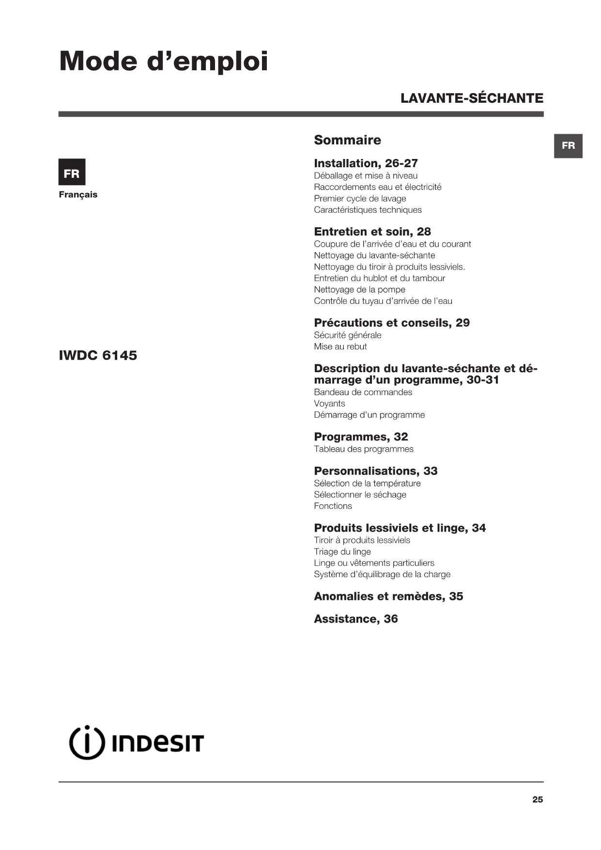 IWDC 6145 Mode d’emploi LAVANTE-SÉCHANTE26