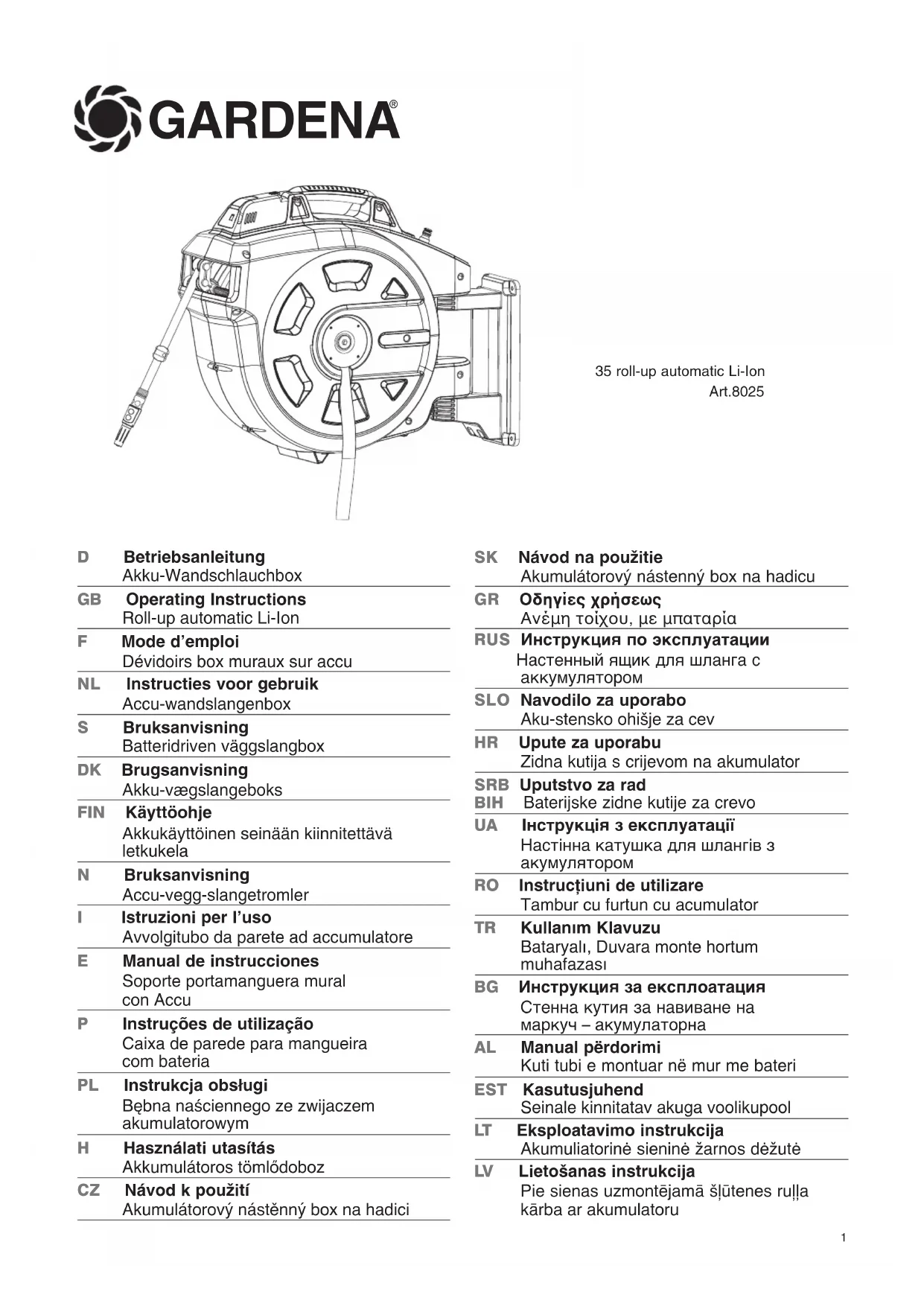 Comfort 35 rollup automatic LiIon - Tuyau d'arrosage GARDENA - Notice d'utilisation et mode d'emploi gratuit