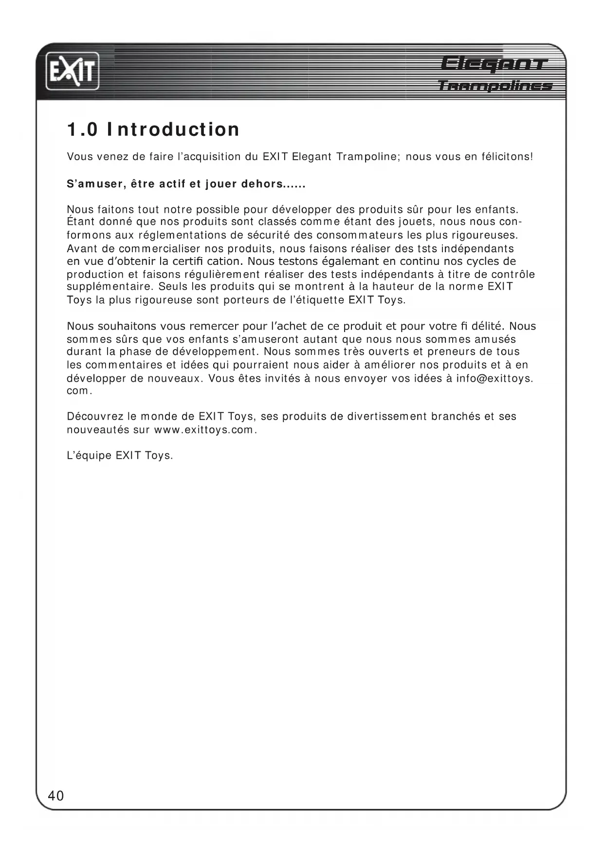 Voues venez de faire I'acquisition du EXIT Elegant Trampoline; nous you en felicitons!