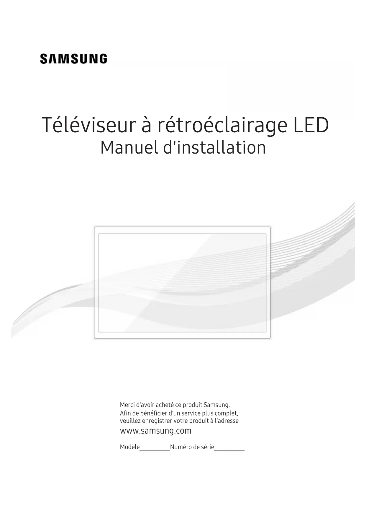Merci d'avoir acheté ce produit Samsung. An de bénécier d'un service plus complet, veuillez enregistrer votre produit à l'adresse www.samsung.com Modèle Numéro de série Téléviseur à rétroéclairage LED Manuel d'installation