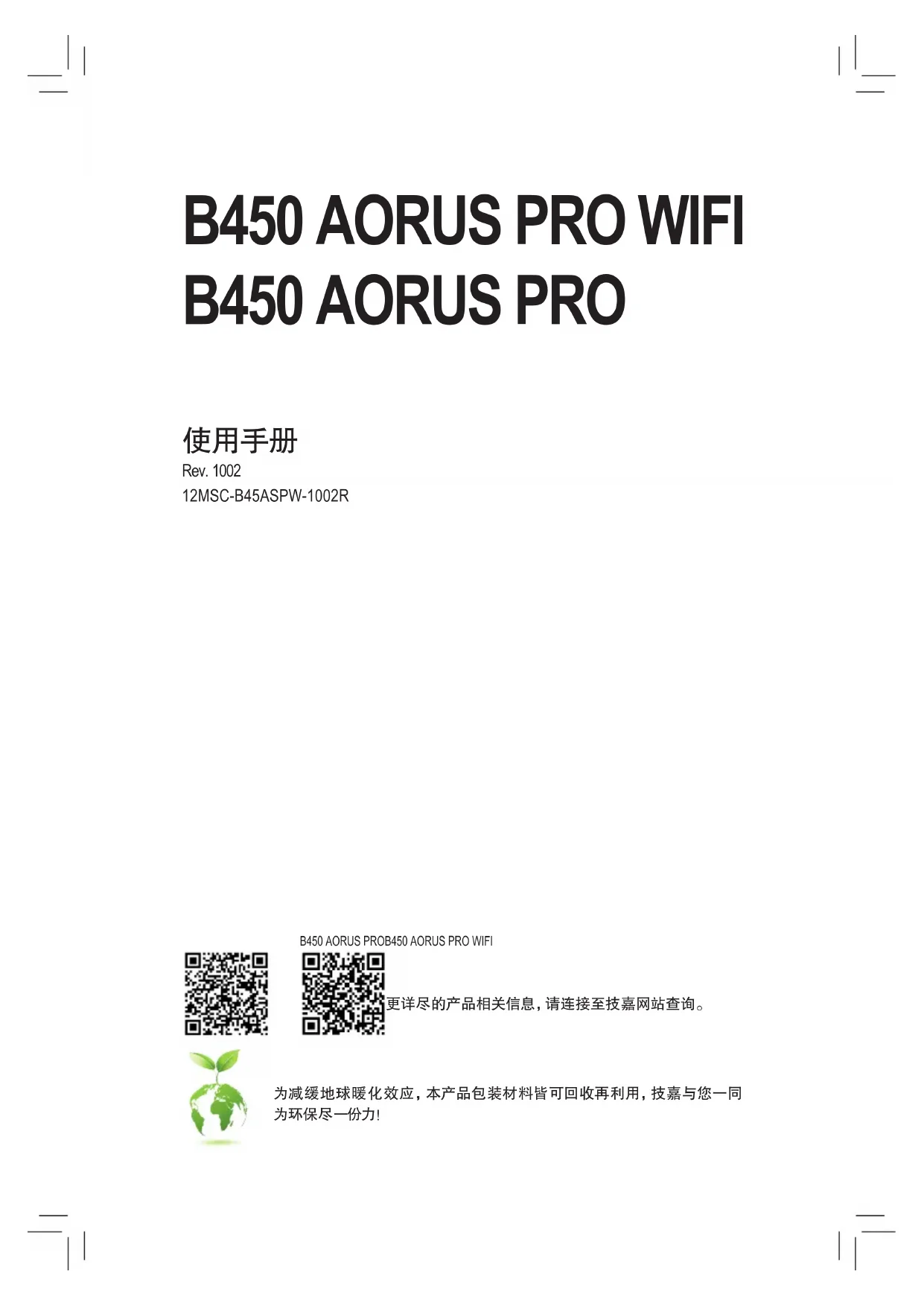 Retrouvez gratuitement la notice de l'appareil B450 Aorus PRO GIGABYTE au format PDF.