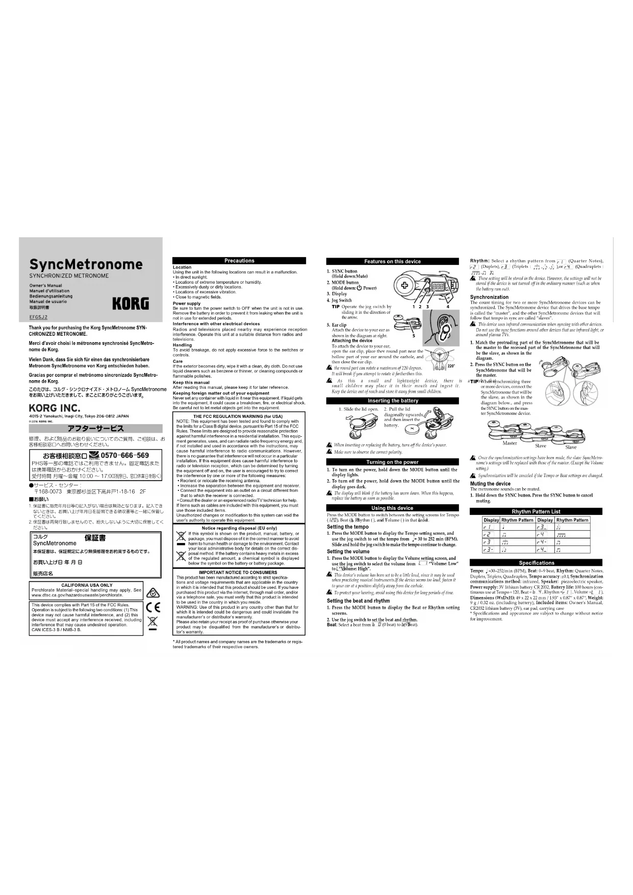 Retrouvez gratuitement la notice de l'appareil SyncMetronome KORG au format PDF.