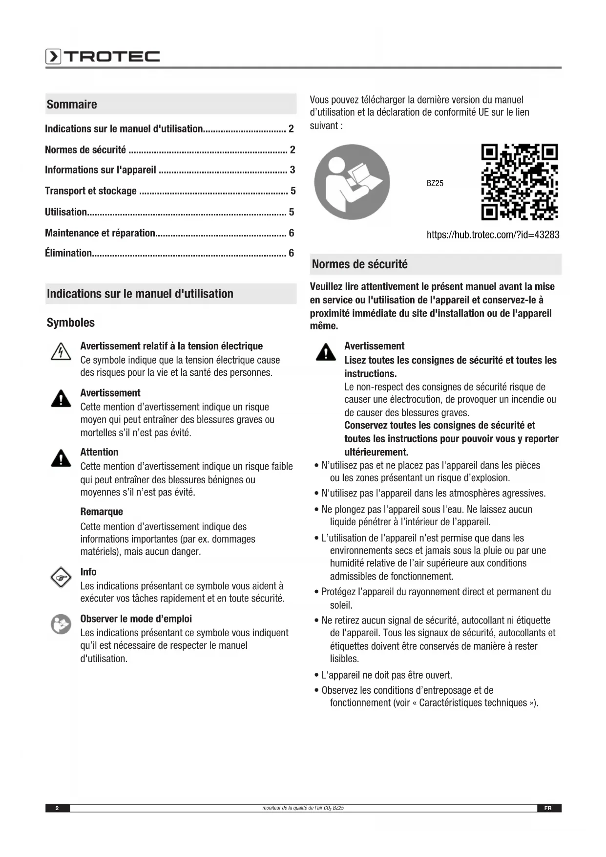 Retrouvez gratuitement la notice de l'appareil BZ25 TROTEC au format PDF.