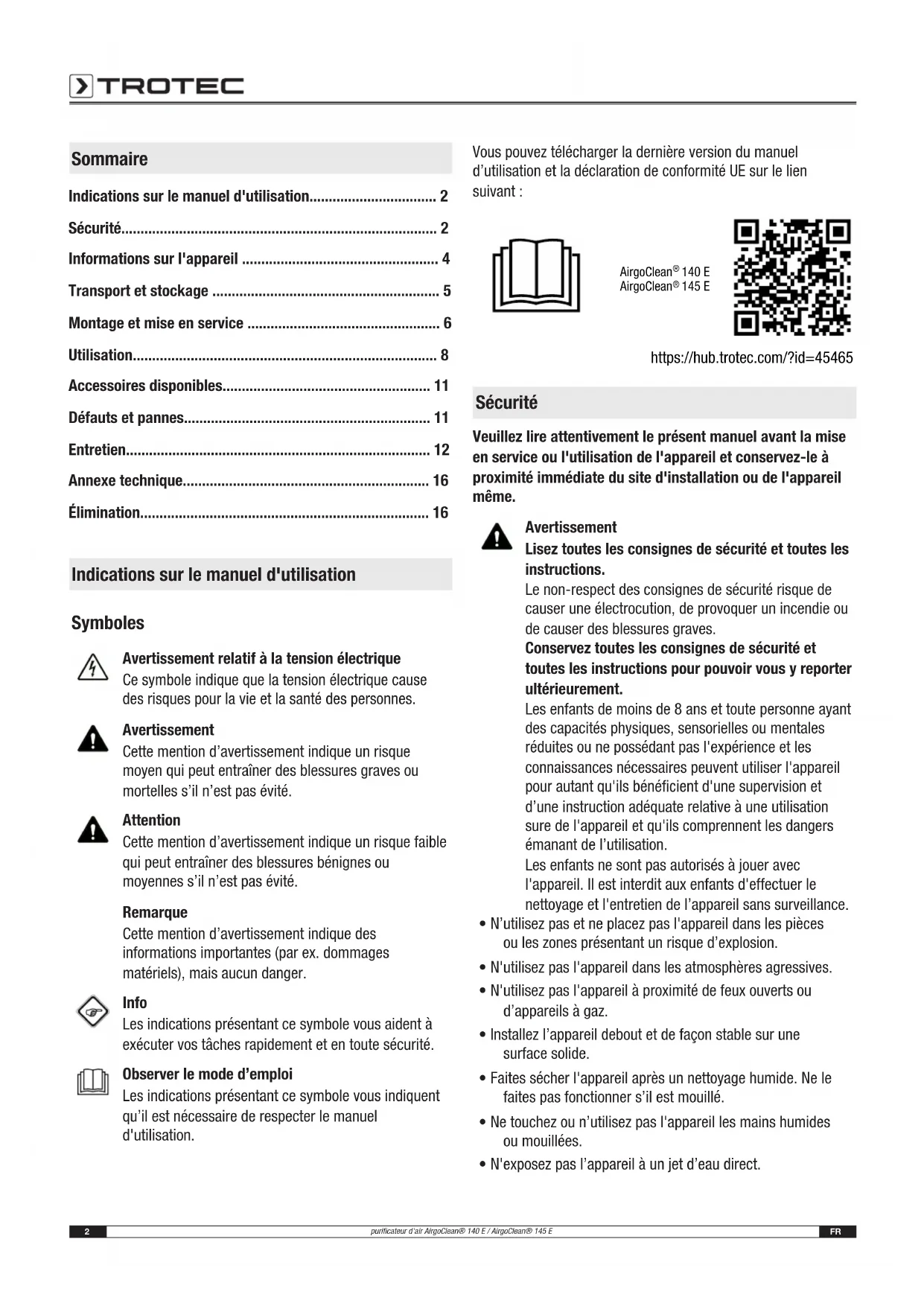 Retrouvez gratuitement la notice de l'appareil AirgoClean 145 E TROTEC au format PDF.