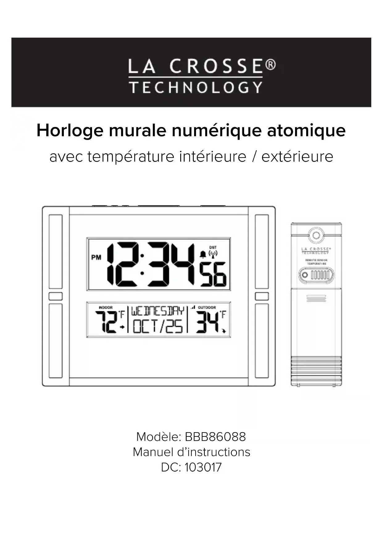 BBB86088V2 - Horloge LA CROSSE TECHNOLOGY - Notice d'utilisation et mode d'emploi gratuit