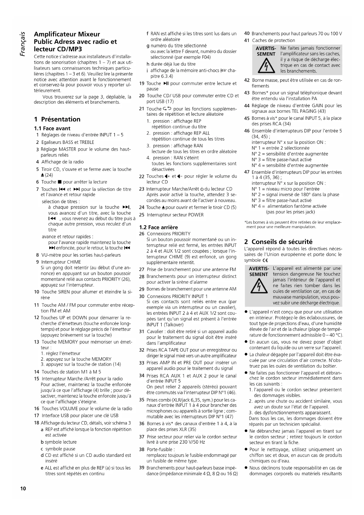 Cette notice s'adresse aux installateurs d'installations de sonorisation (chapitres 1 – 7) et aux utilisateurs sans connaissances techniques particulières (chapitres 1 – 3 et 6). Veuillez lire la présente notice avec attention avant le fonctionnement et conservez-la pour pouvoir vous y reporter ultérieurement.