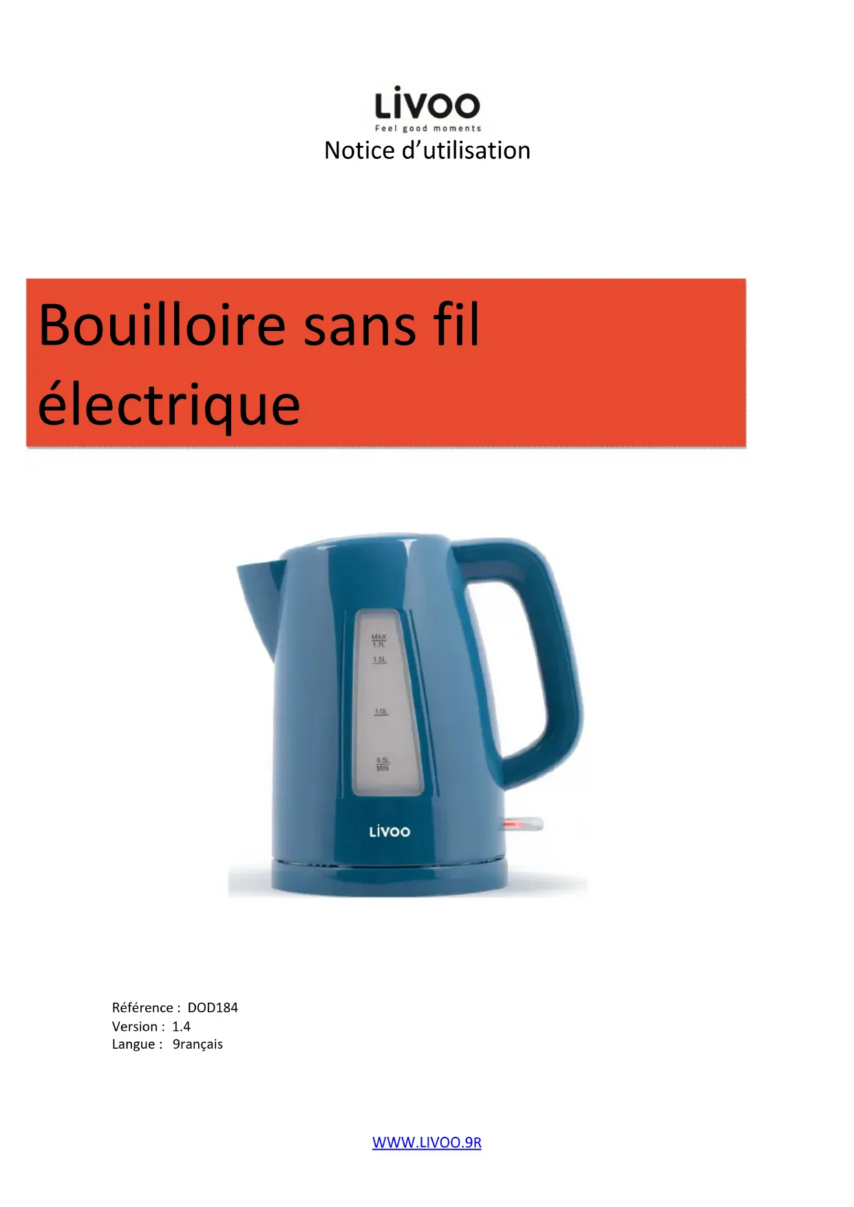 DOD184 - Bouilloire LIVOO - Notice d'utilisation et mode d'emploi gratuit