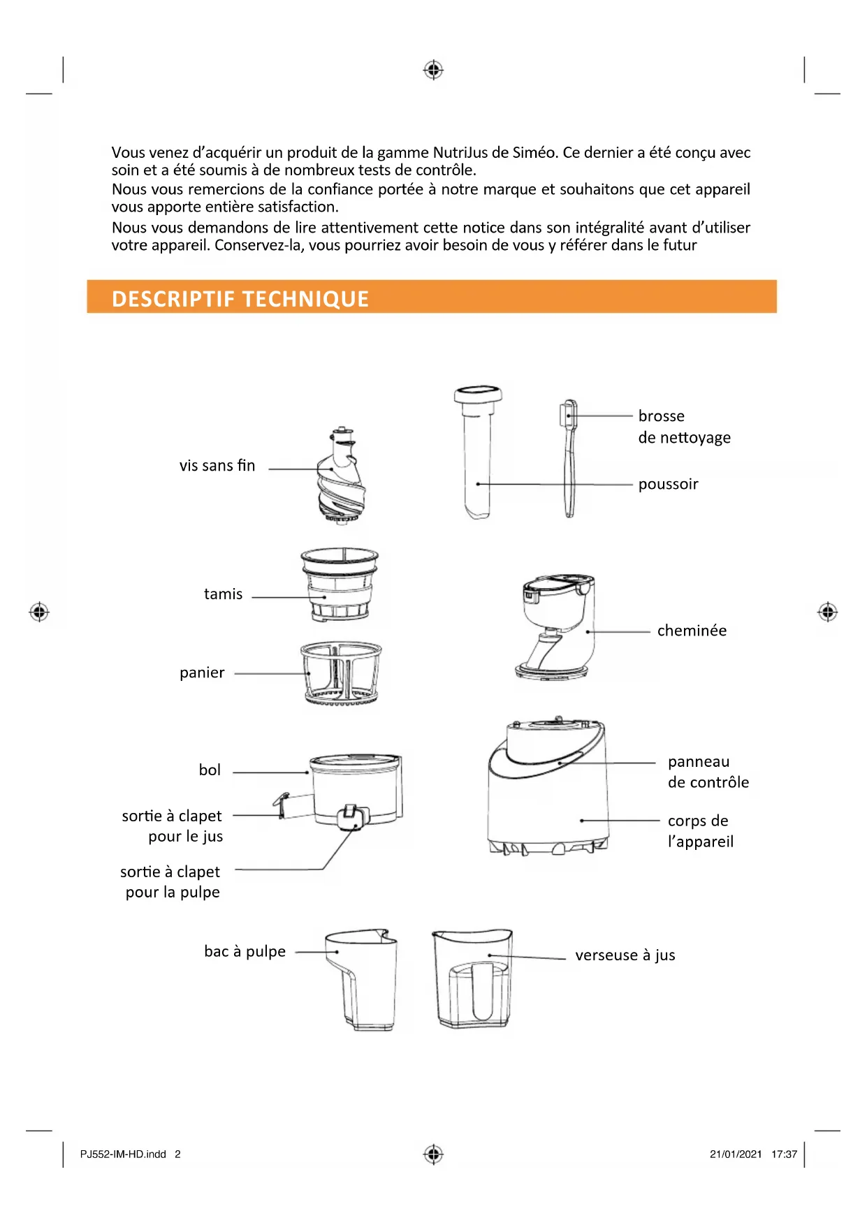 PJ552 - Extracteur de jus SIMEO - Notice d'utilisation et mode d'emploi gratuit