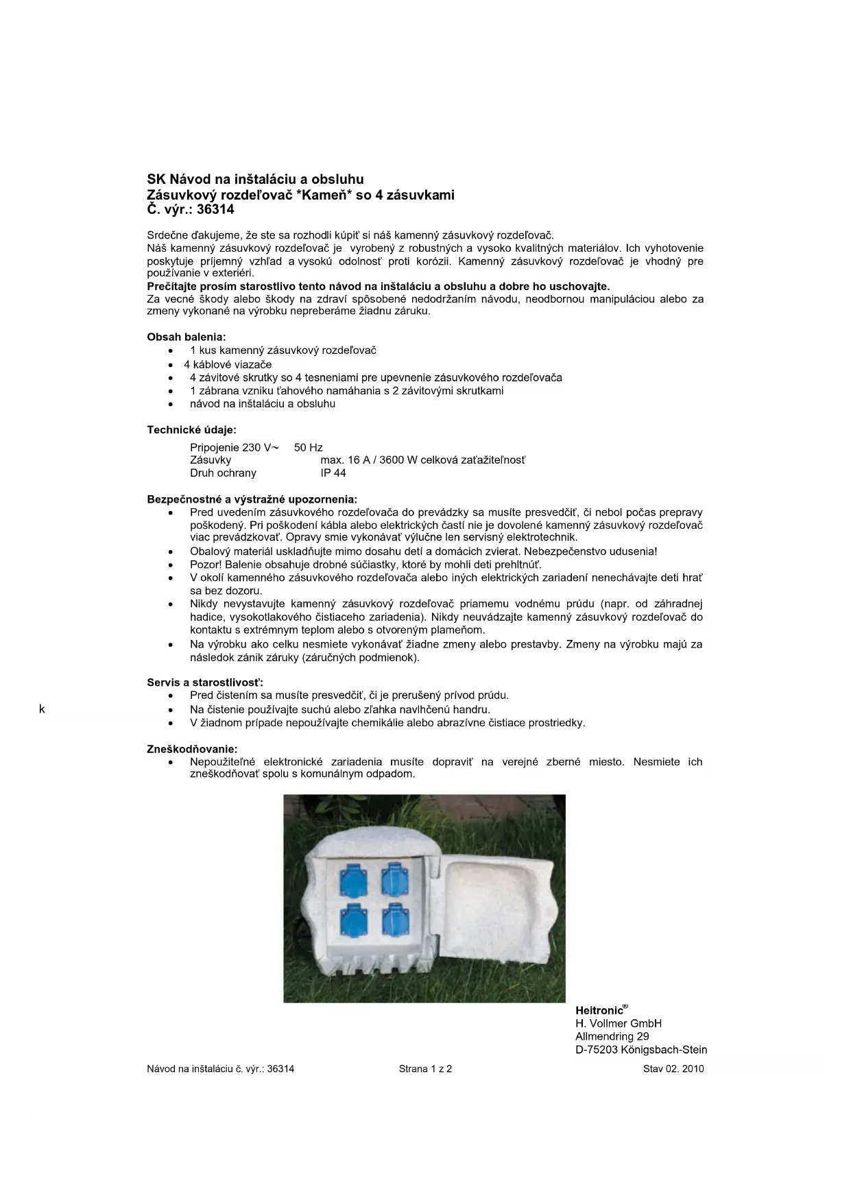 36314 - Prise murale Heitronic - Notice d'utilisation et mode d'emploi gratuit