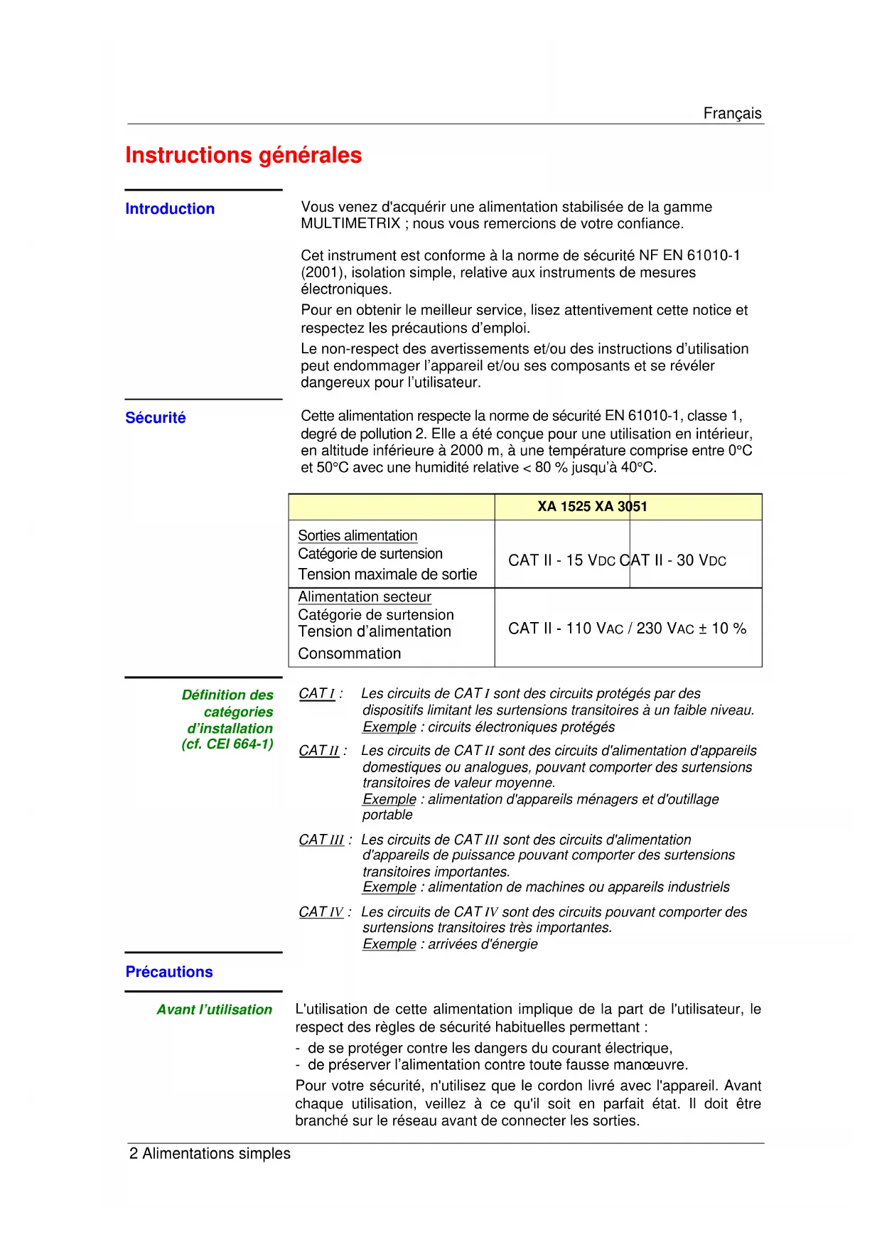 Vou venez d'acquerir une alimentation stabilisée de la gamme MULTIMETRIX ; nous vous remercions de votre confiance.