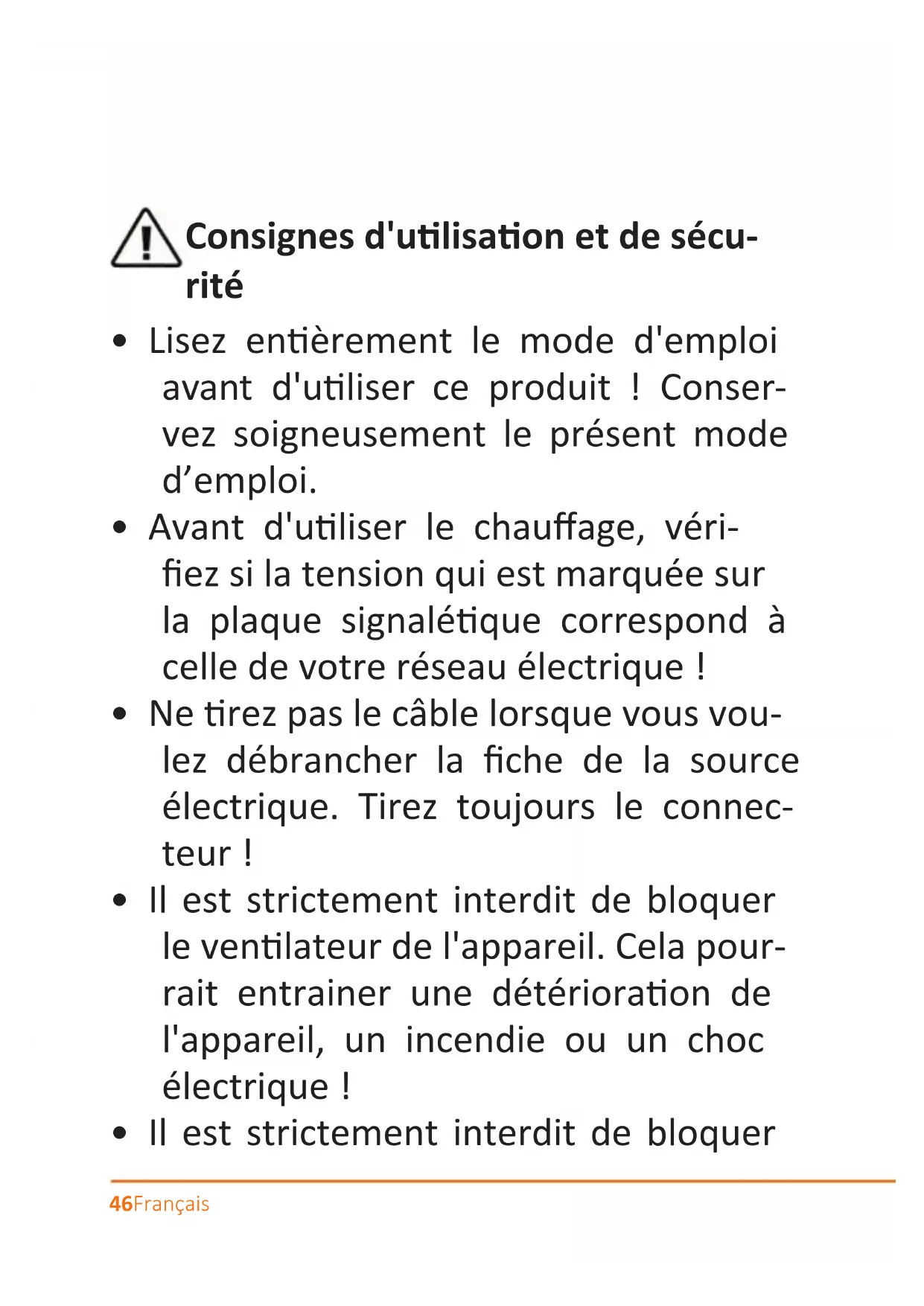 Débranche toujours la fiche de la source électrique lorsque l'appareil n'est pas en service! Ne laissez jamais le ventilateur de chauffage sans surveillance!