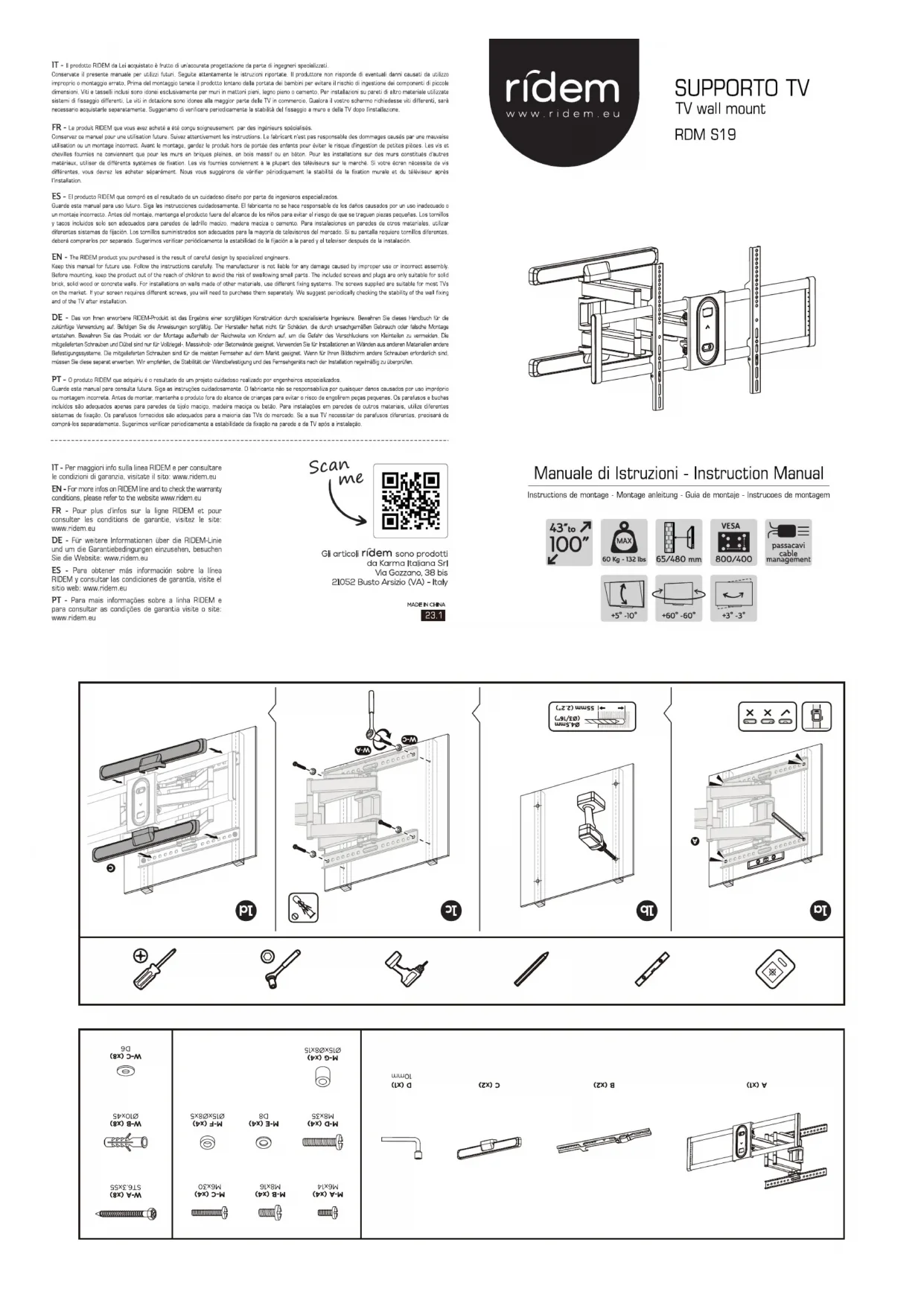 RDM S19 - Support mural Ridem - Notice d'utilisation et mode d'emploi gratuit