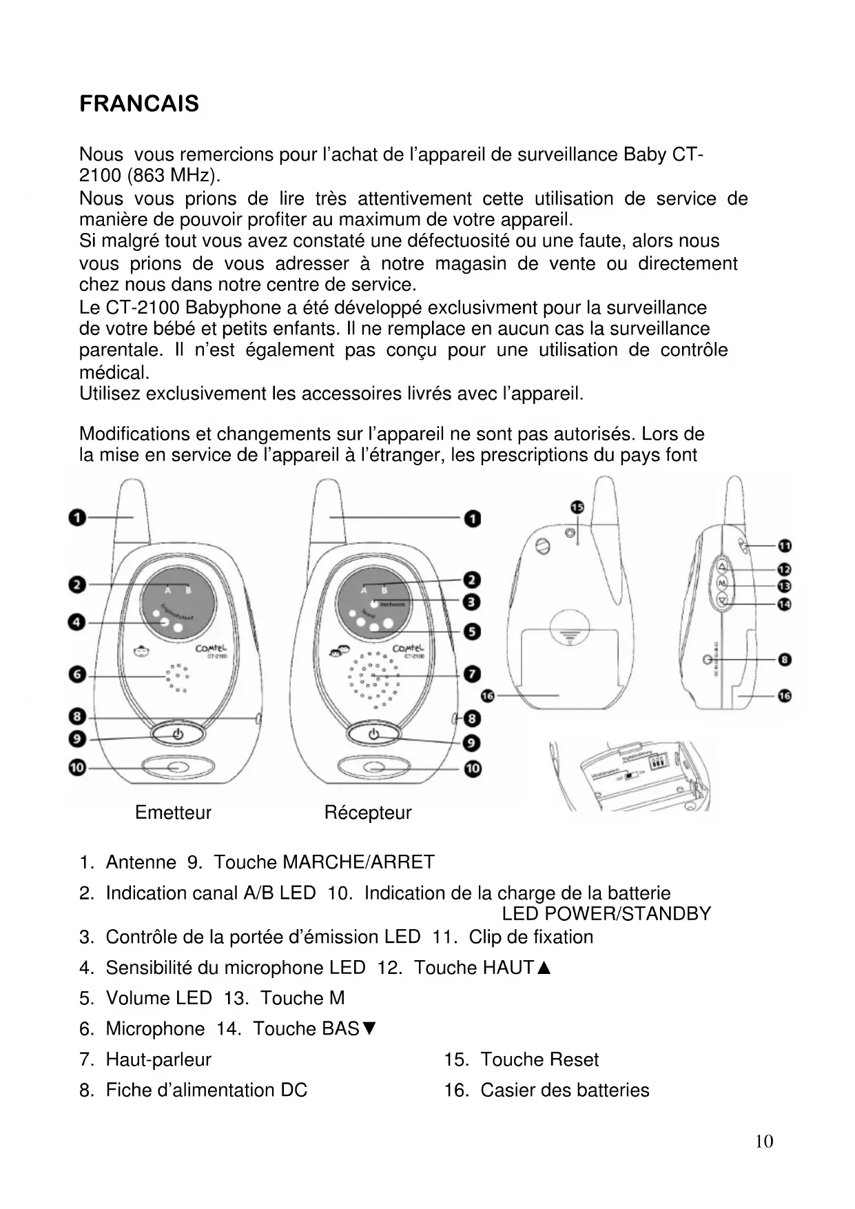 Nous vous remercions pour l'achat de l'appareil de surveillance Baby CT-2100 (863 MHz).