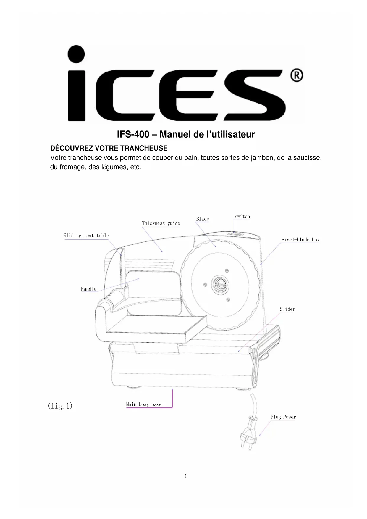 IFS400 - Trancheuse Ices - Notice d'utilisation et mode d'emploi gratuit
