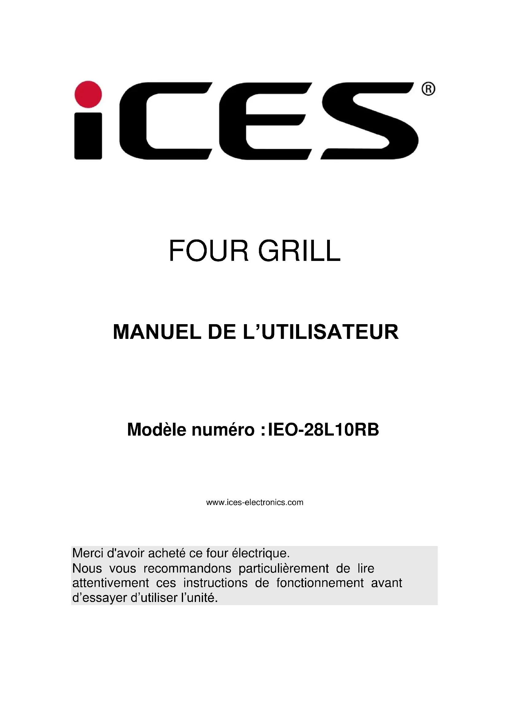 Retrouvez gratuitement la notice de l'appareil IEO28L10RB Ices au format PDF.