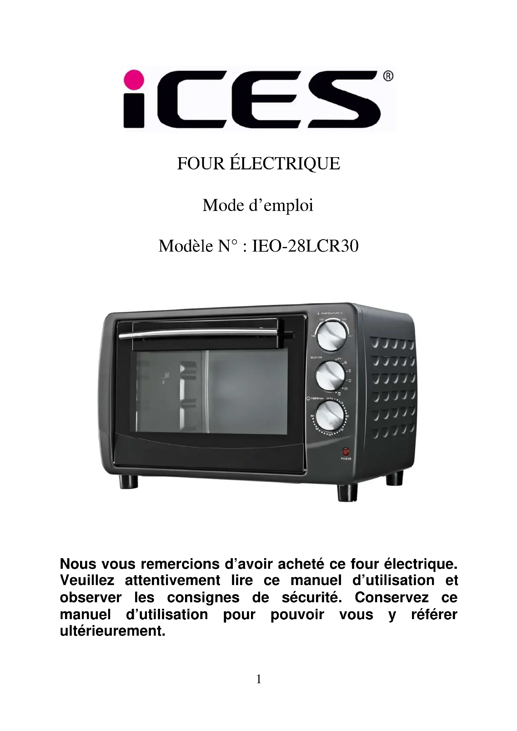 Retrouvez gratuitement la notice de l'appareil IEO28LCR30 Ices au format PDF.