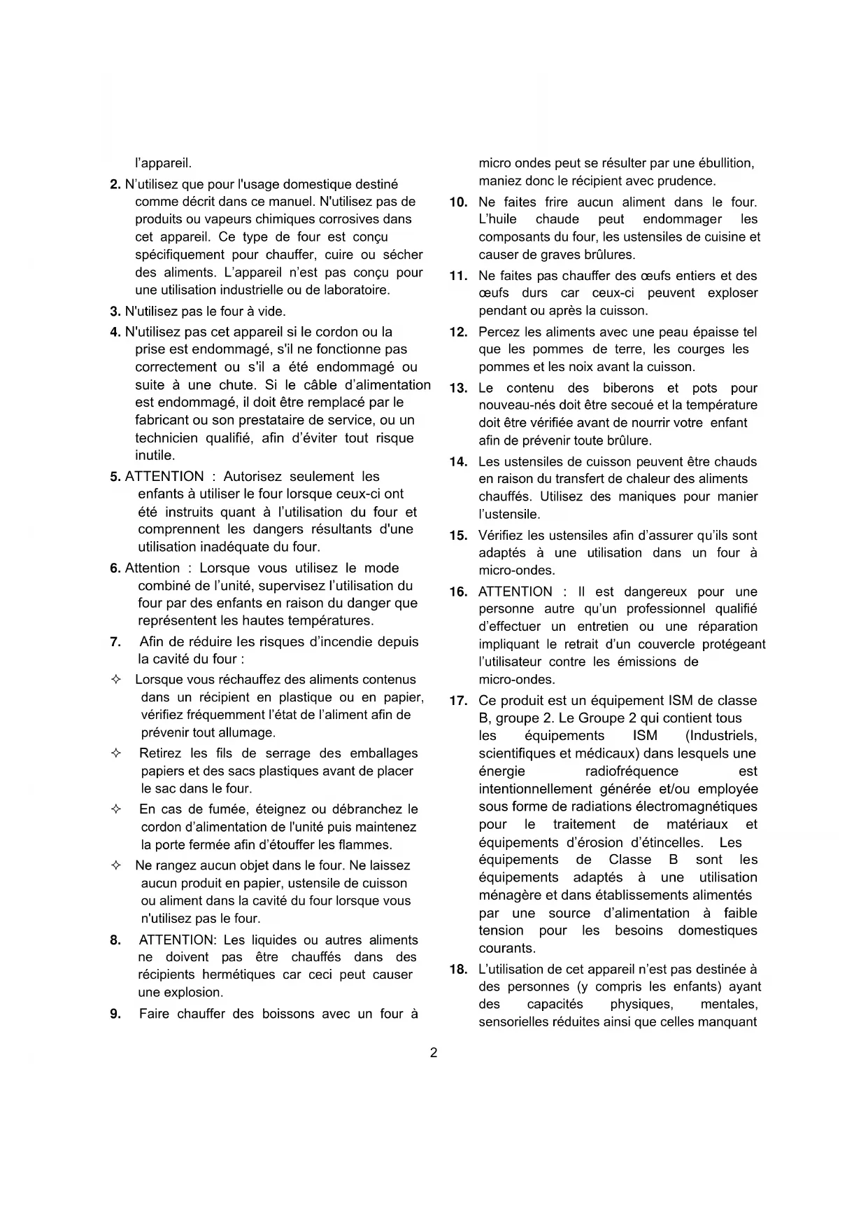 2. N’utilisez que pour l'usage domestique destiné