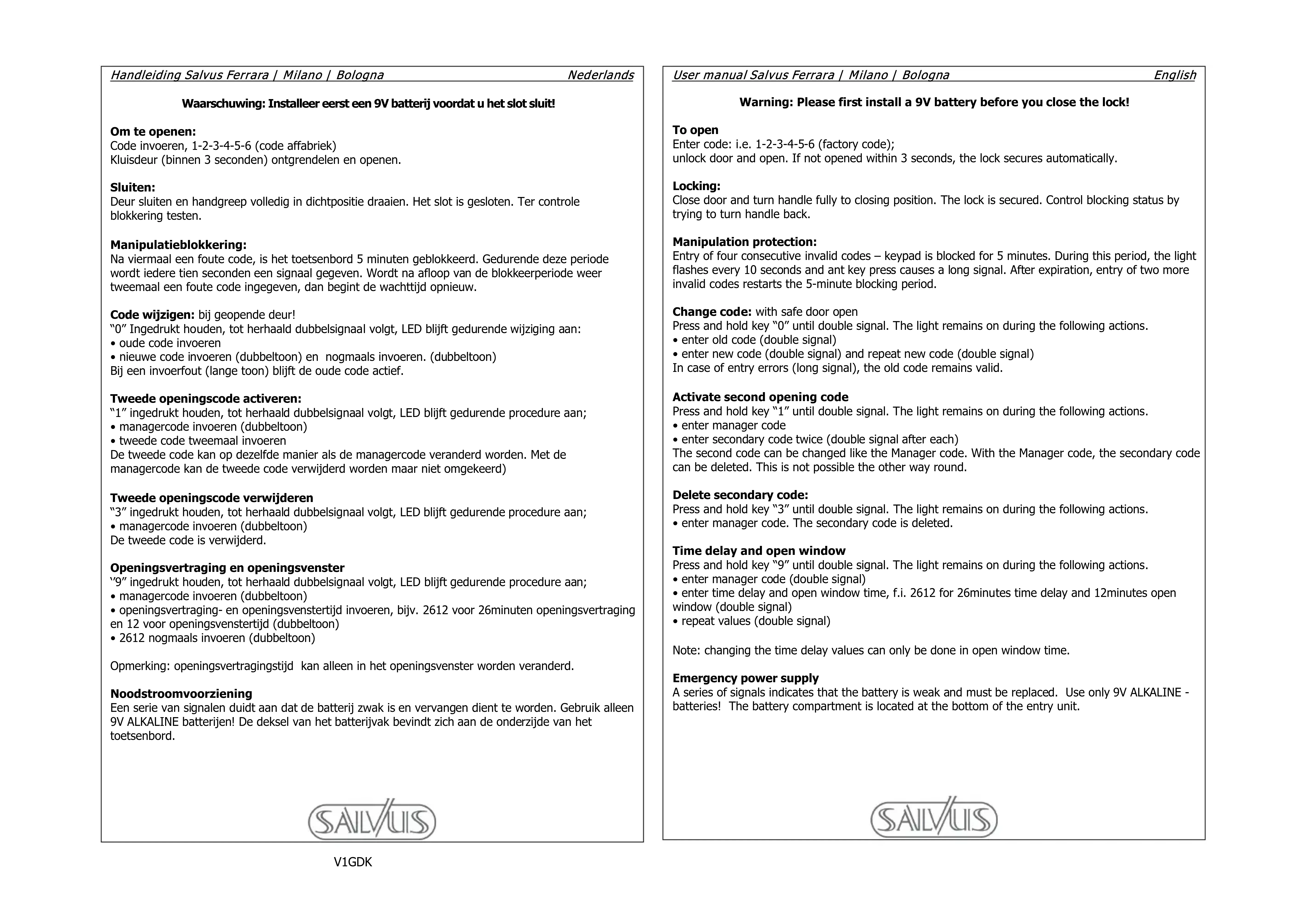 Téléchargez la notice de votre Coffre-fort au format PDF gratuitement ! Retrouvez votre notice Milano - Salvus et reprennez votre appareil électronique en main. Sur cette page sont publiés tous les documents nécessaires à l'utilisation de votre appareil Milano de la marque Salvus.