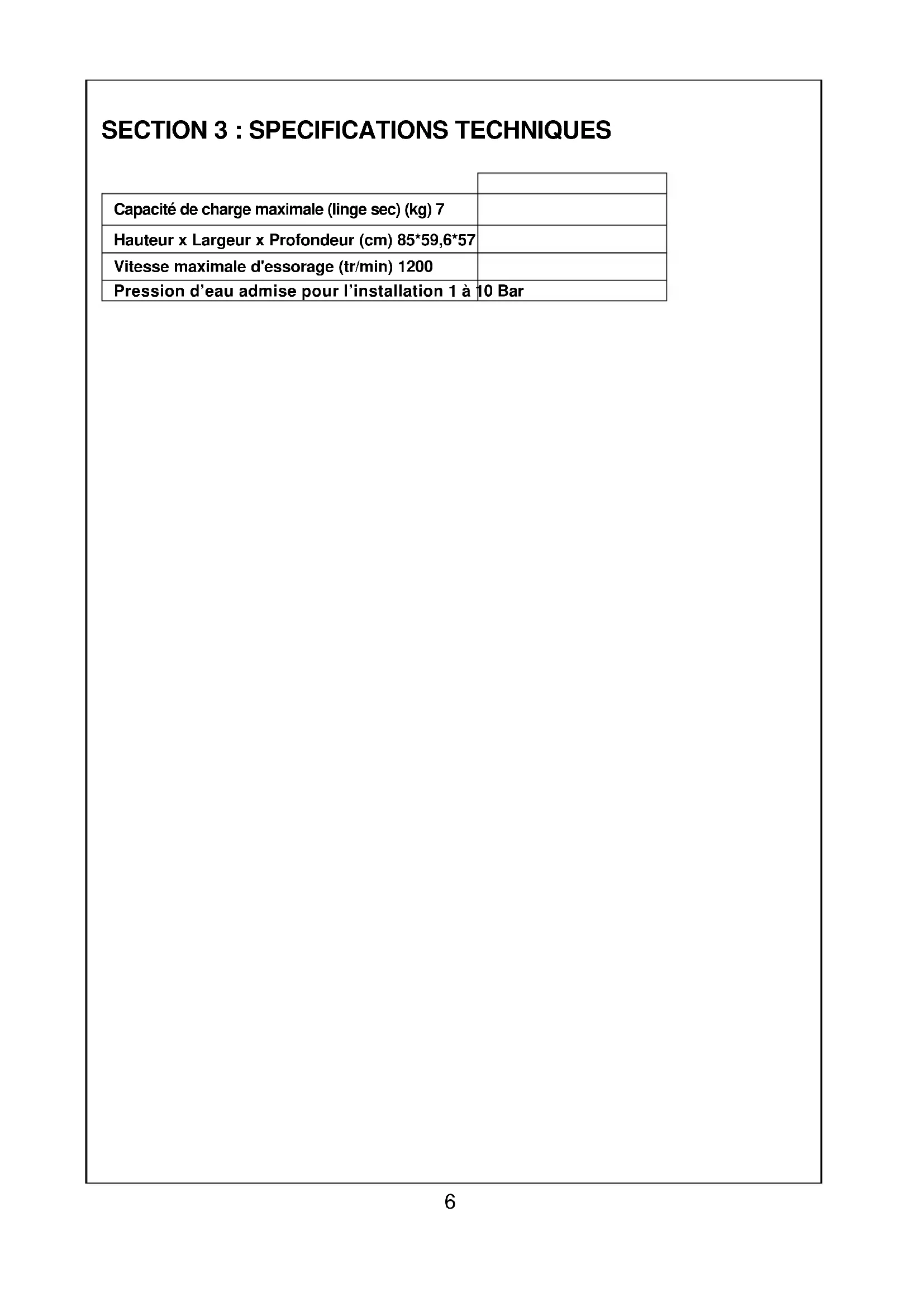 SECTION 3: SPECIFICATIONS TECHNIQUES