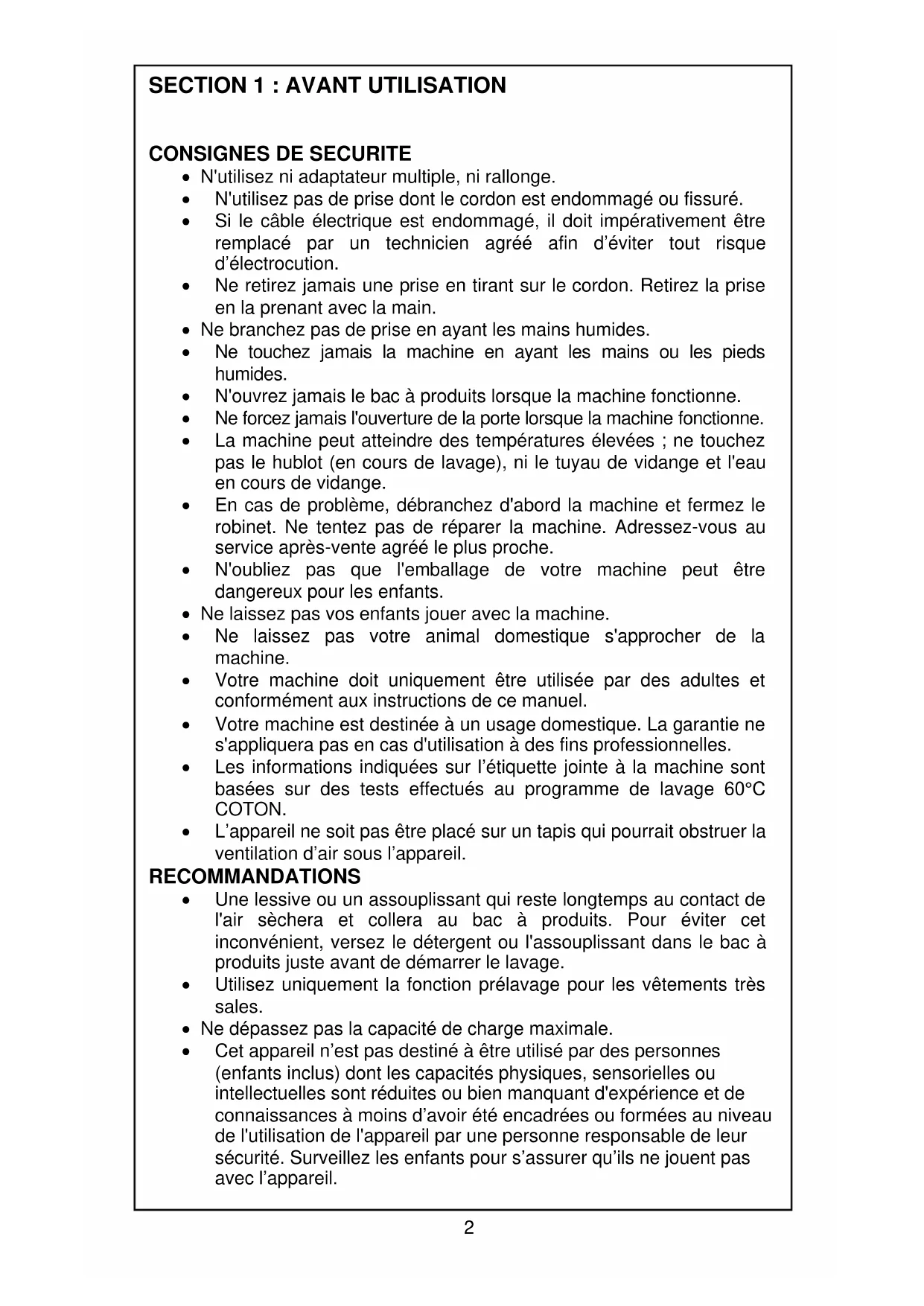 - Consignes de sécurité ... Page 2