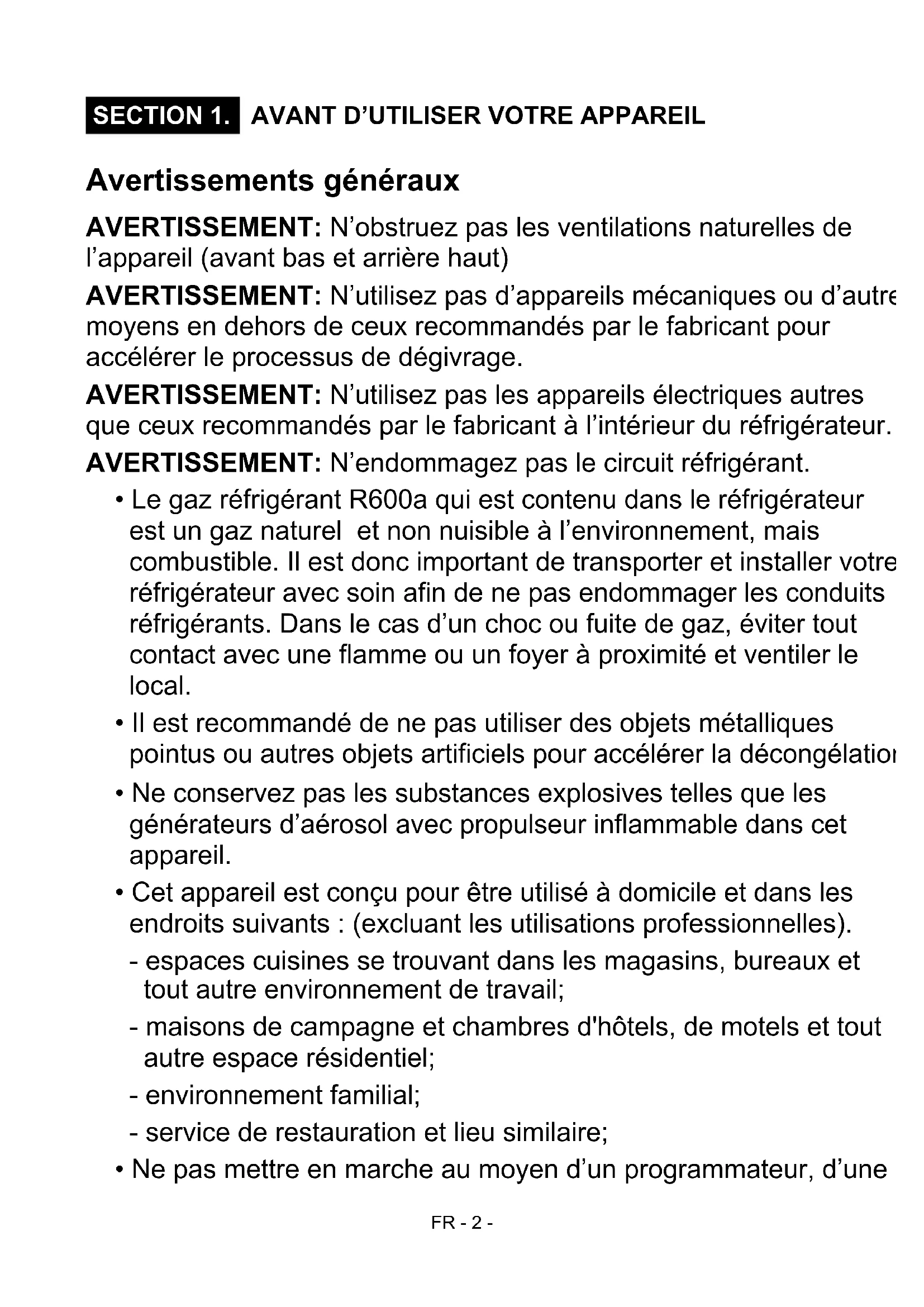 SECTION 1. AVANT D'UTILISER VOTRE APPAREIL