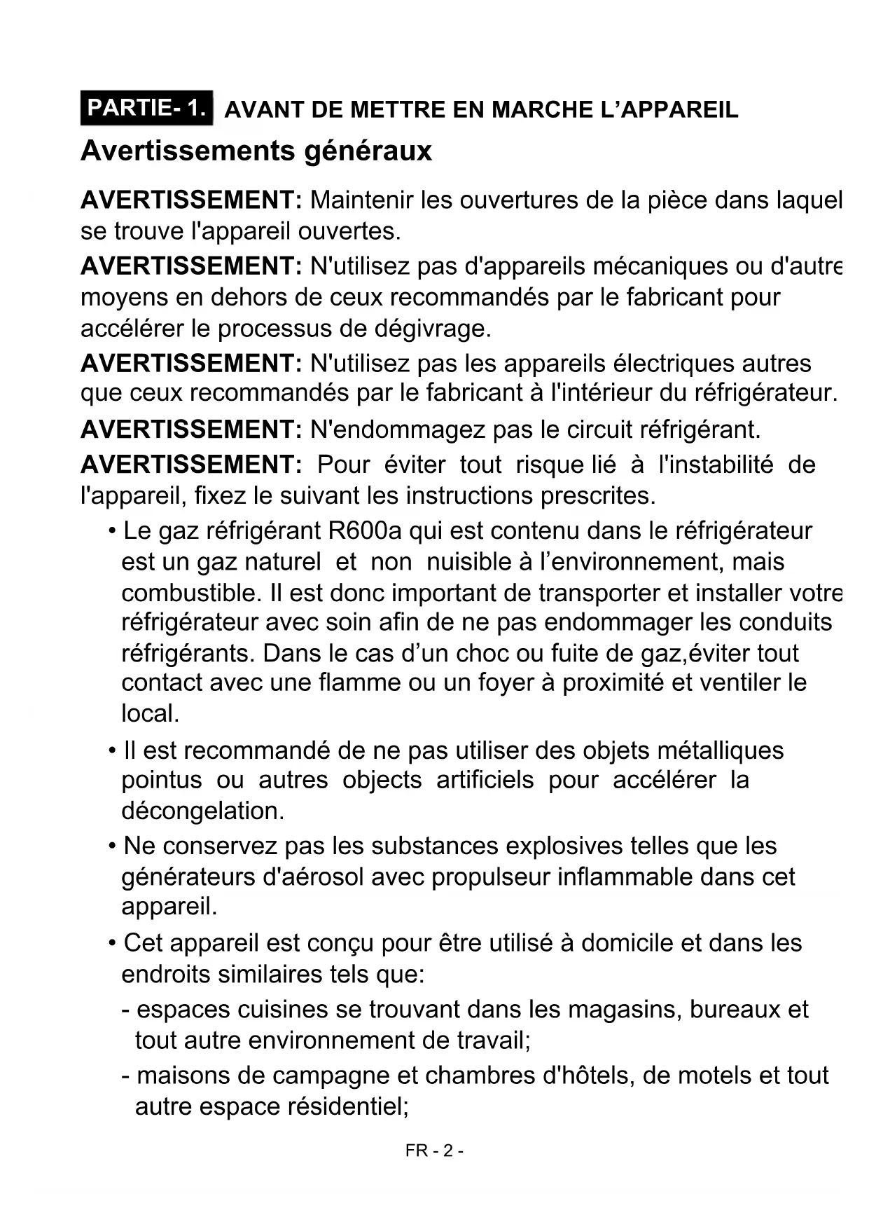 Avertissements généraux 2