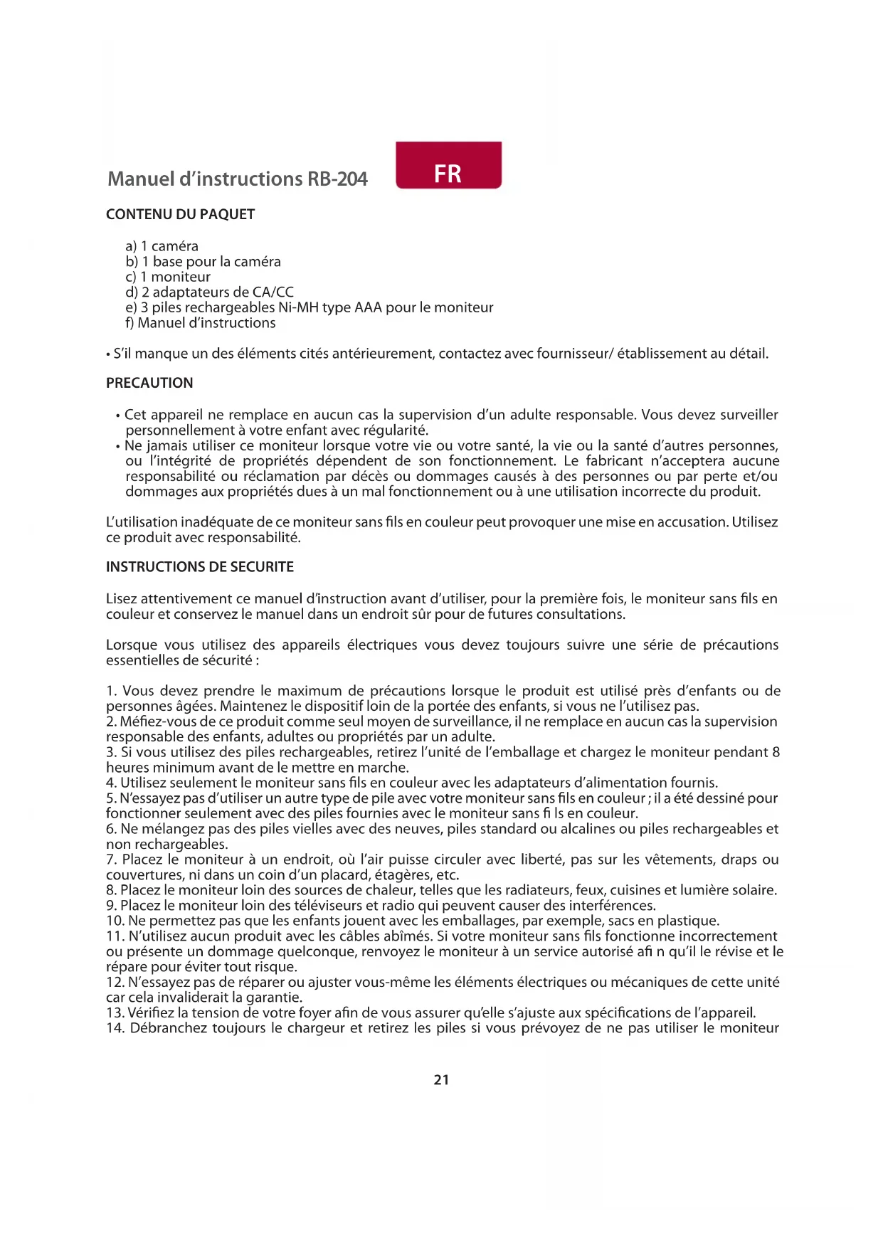 Téléchargez la notice de votre Moniteurs pour bébé au format PDF gratuitement ! Retrouvez votre notice Baby Kangoo RB204 - Rimax et reprennez votre appareil électronique en main. Sur cette page sont publiés tous les documents nécessaires à l'utilisation de votre appareil Baby Kangoo RB204 de la marque Rimax.