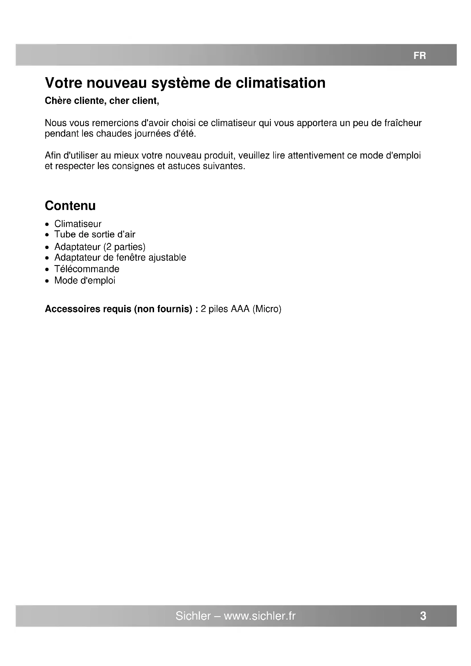 Nous vous remercions d'avoir choisi ce climatiseur qui vous apportera un peu de fraîcheur pendant les chaudes journées d'été.