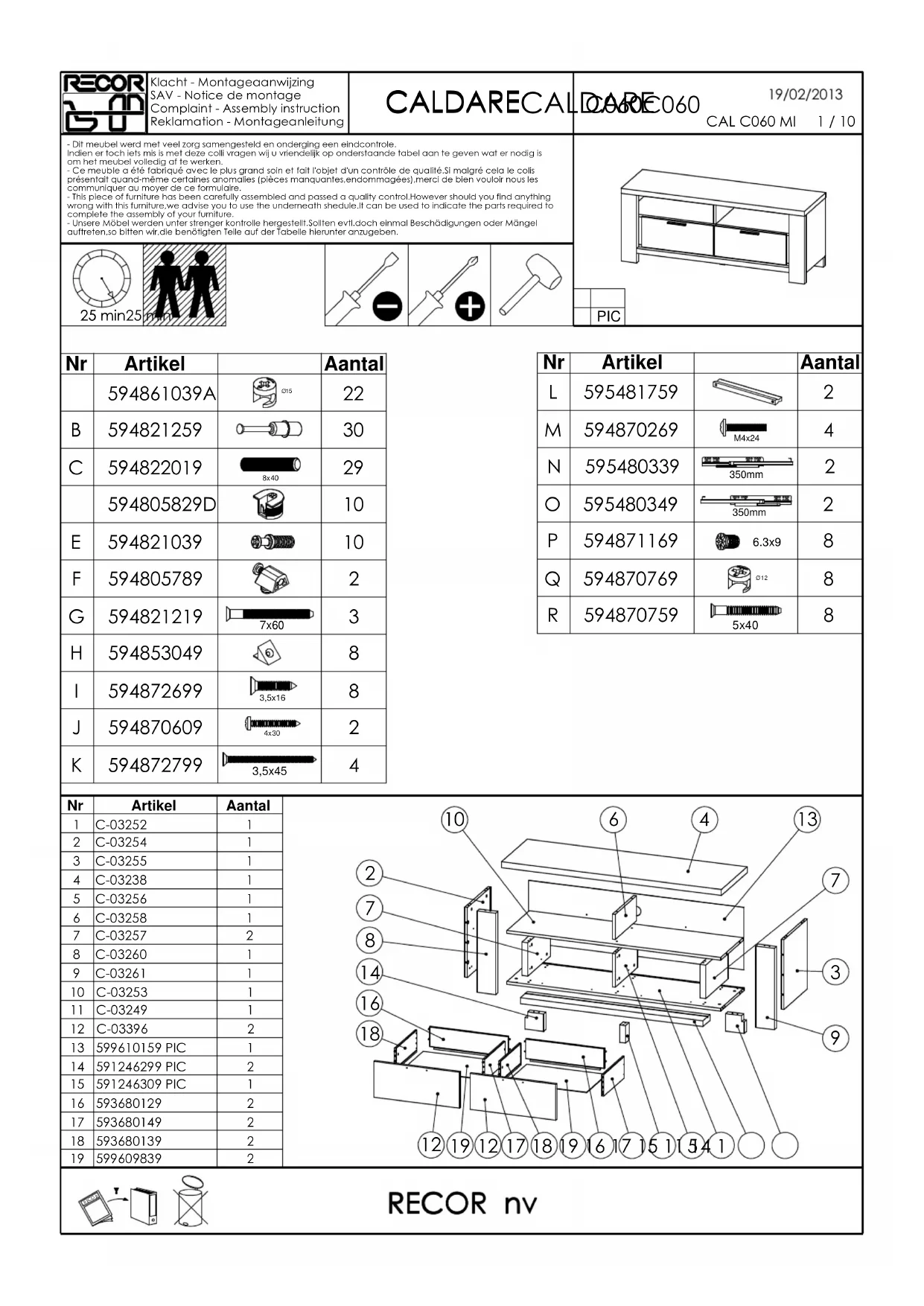Caldare - Meuble TV Pronto - Notice d'utilisation et mode d'emploi gratuit