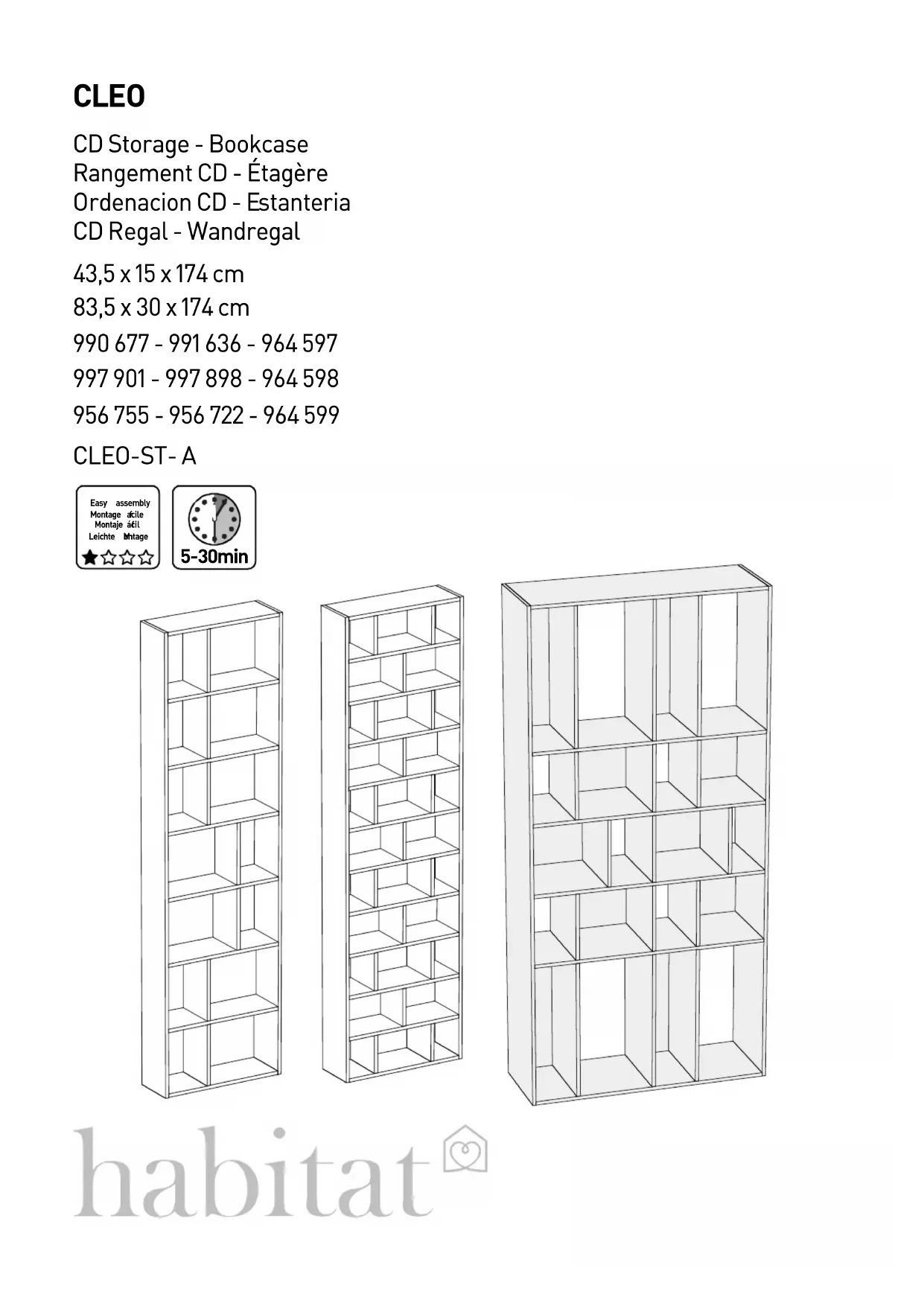 Retrouvez gratuitement la notice de l'appareil Cleo (43.5x15x174) Habitat au format PDF.