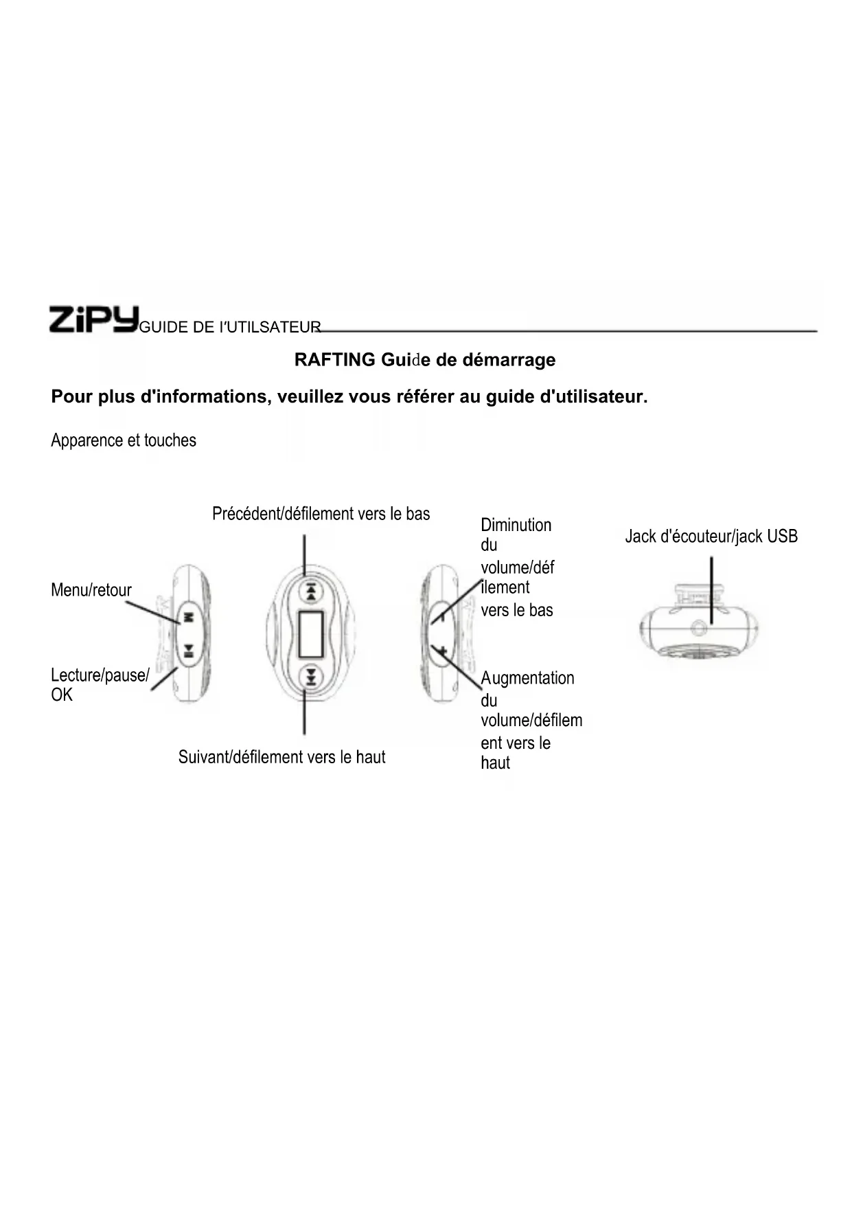 Go Rafting - Lecteur mp3 Zipy - Notice d'utilisation et mode d'emploi gratuit