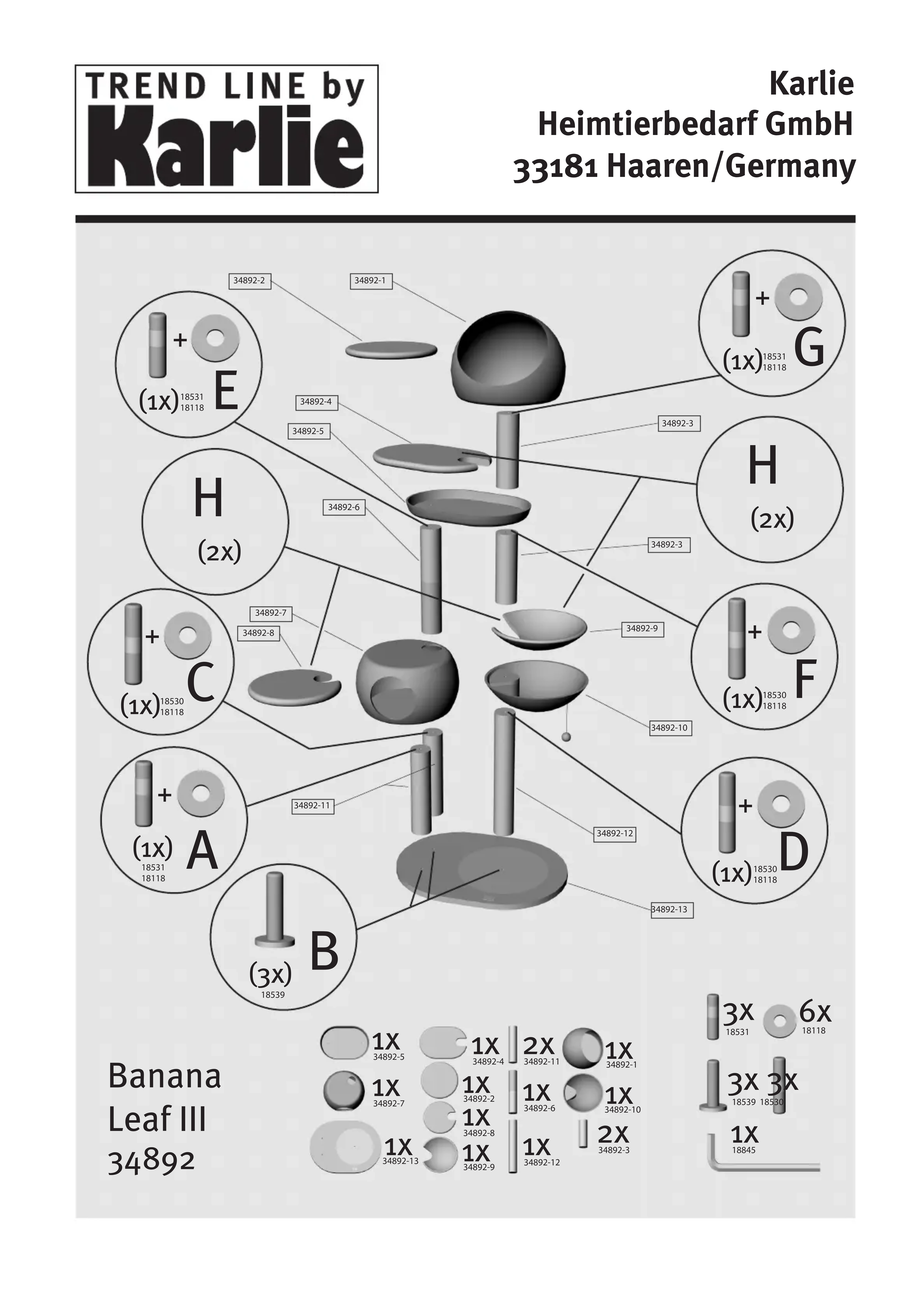 Le Karlie Banana Leaf III est livré avec un guide d'assemblage simple. Suivez les instructions fournies pour un montage rapide et facile.