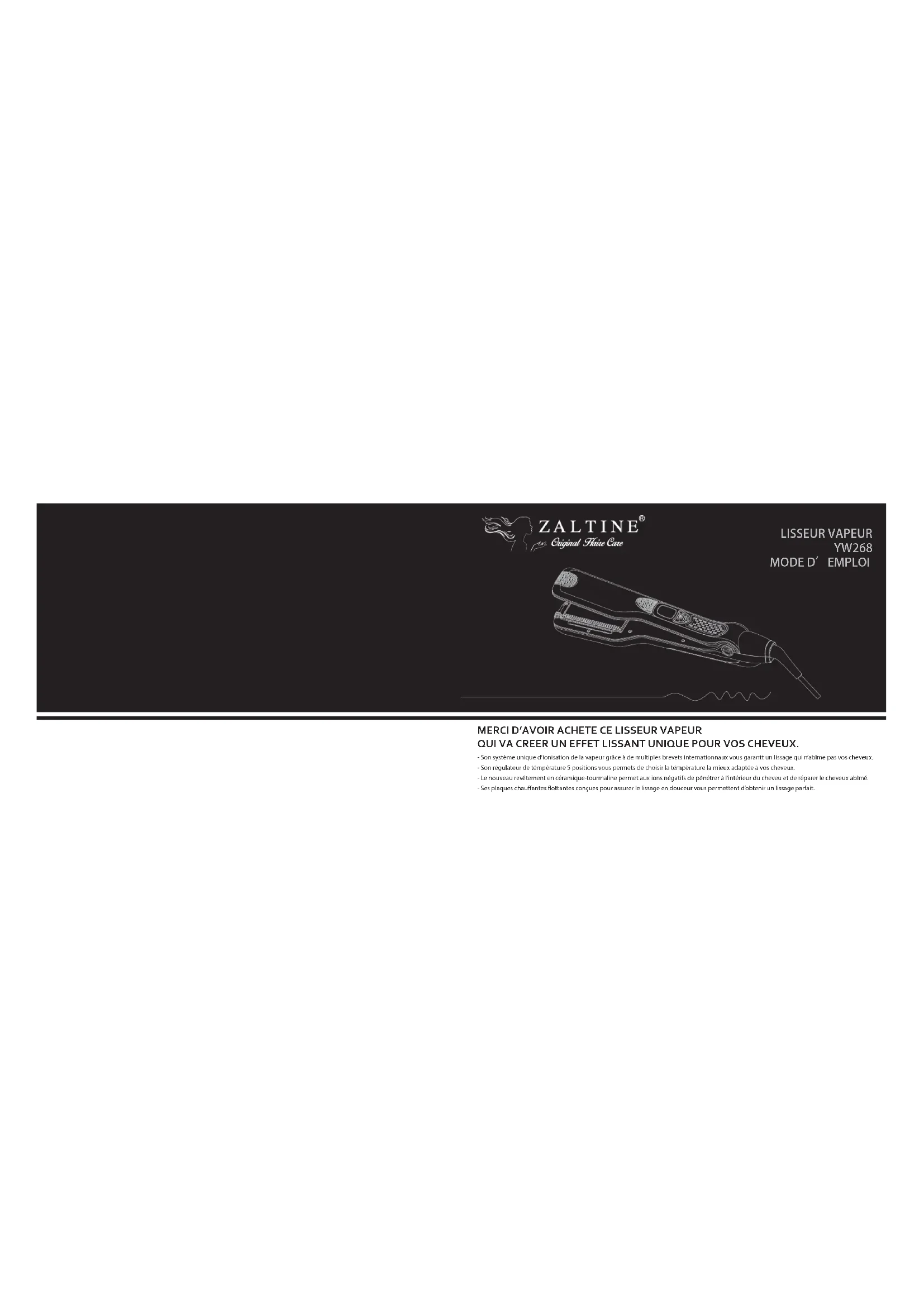 YW268 - Lisseur Zaltine - Notice d'utilisation et mode d'emploi gratuit