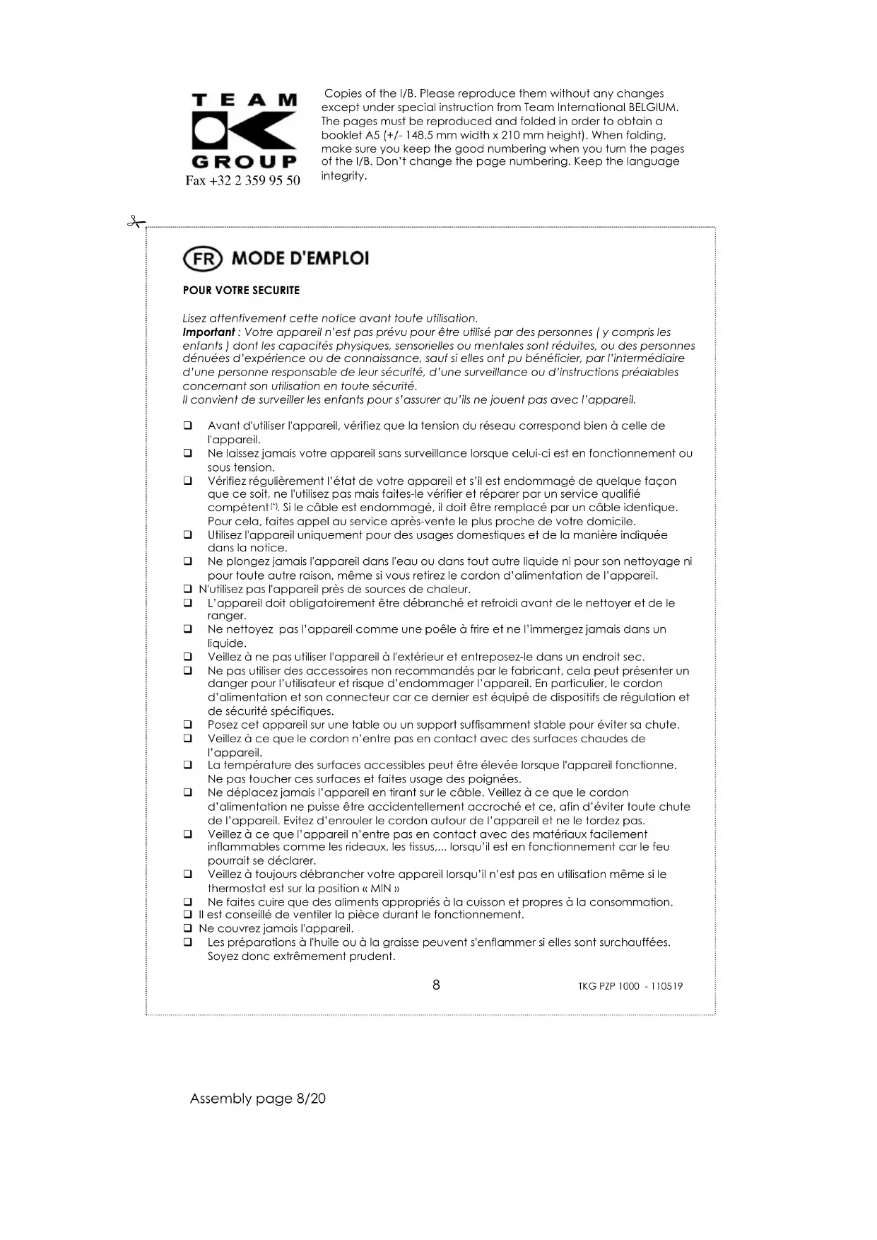 Retrouvez gratuitement la notice de l'appareil TKG PZP 1000 KALORIK au format PDF.