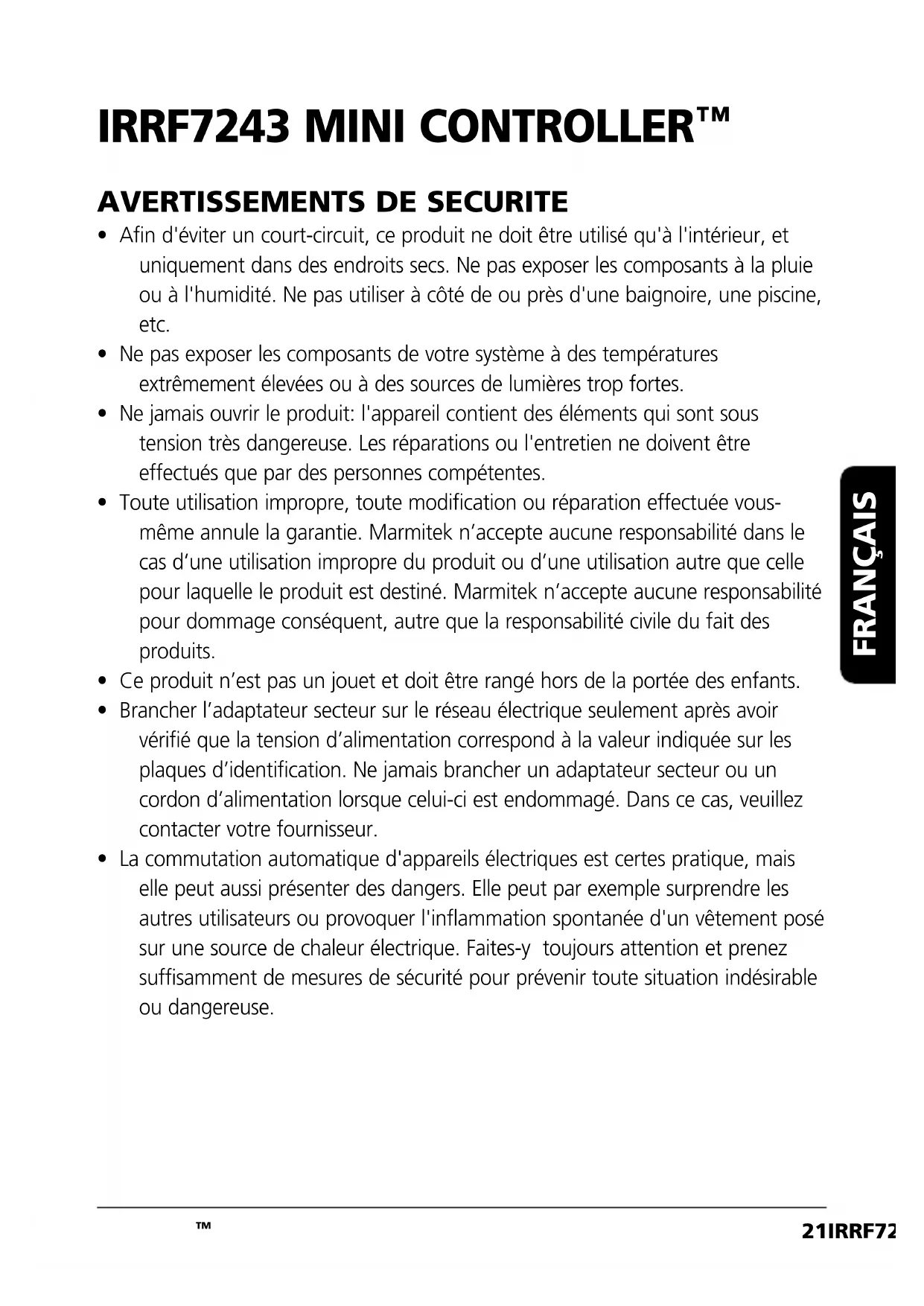 MODE D'EMPLOI IRRF7243 MARMITEK
