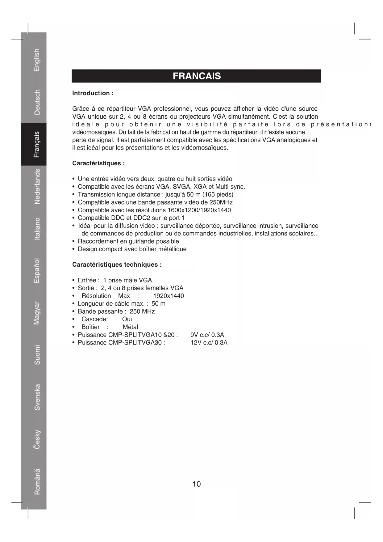 CMPSPLITVGA10 - Répartiteur KONIG - Notice d'utilisation et mode d'emploi gratuit