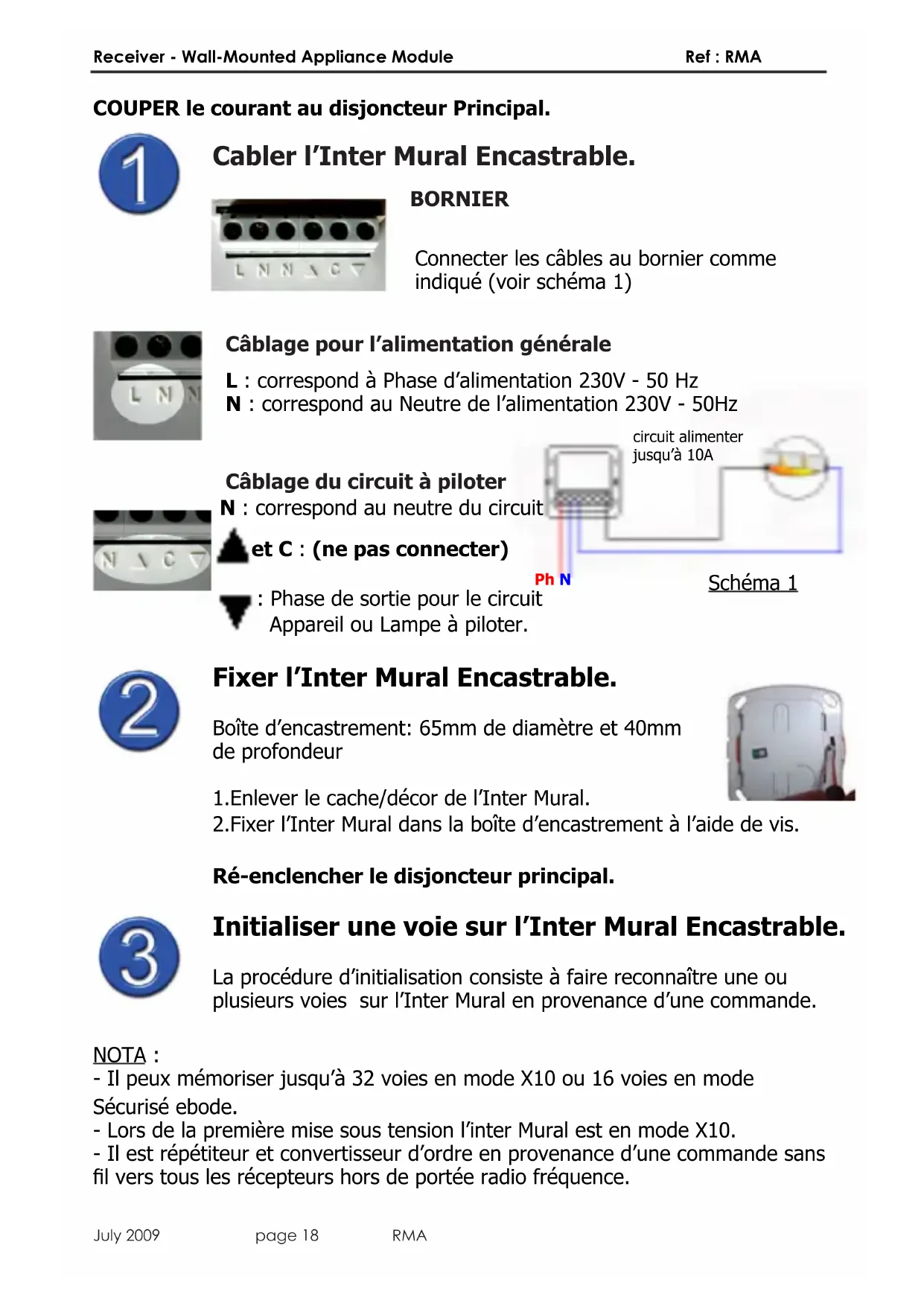 - Lors de la première mise sous tension, l'inter mural est en mode X10.