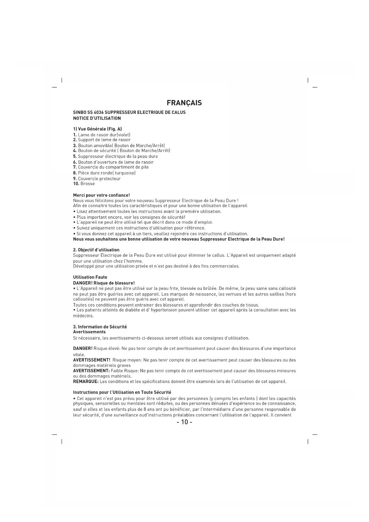 SS4036 - Suppression de callosités SINBO - Notice d'utilisation et mode d'emploi gratuit