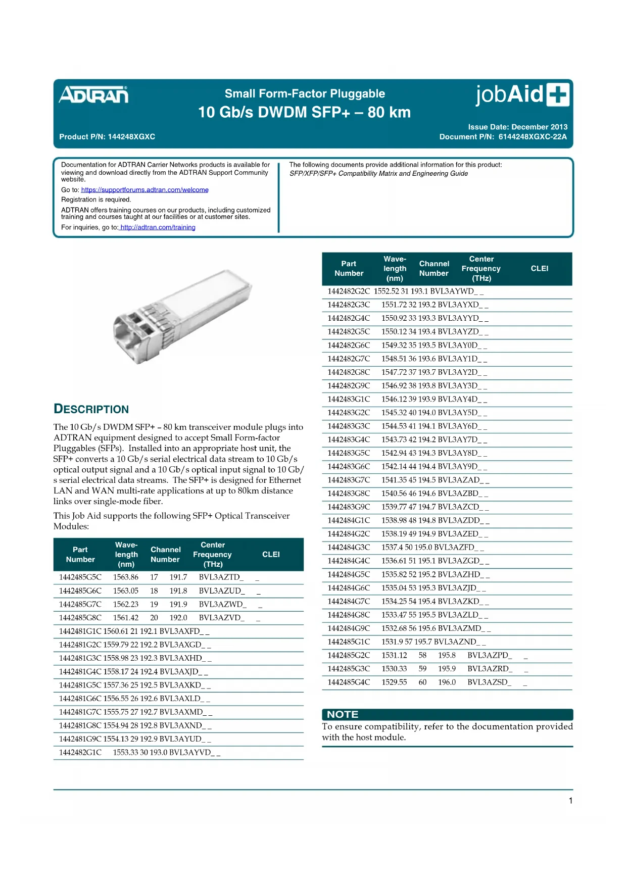 1442484G2C - Composant réseau optique Adtran - Notice d'utilisation et mode d'emploi gratuit