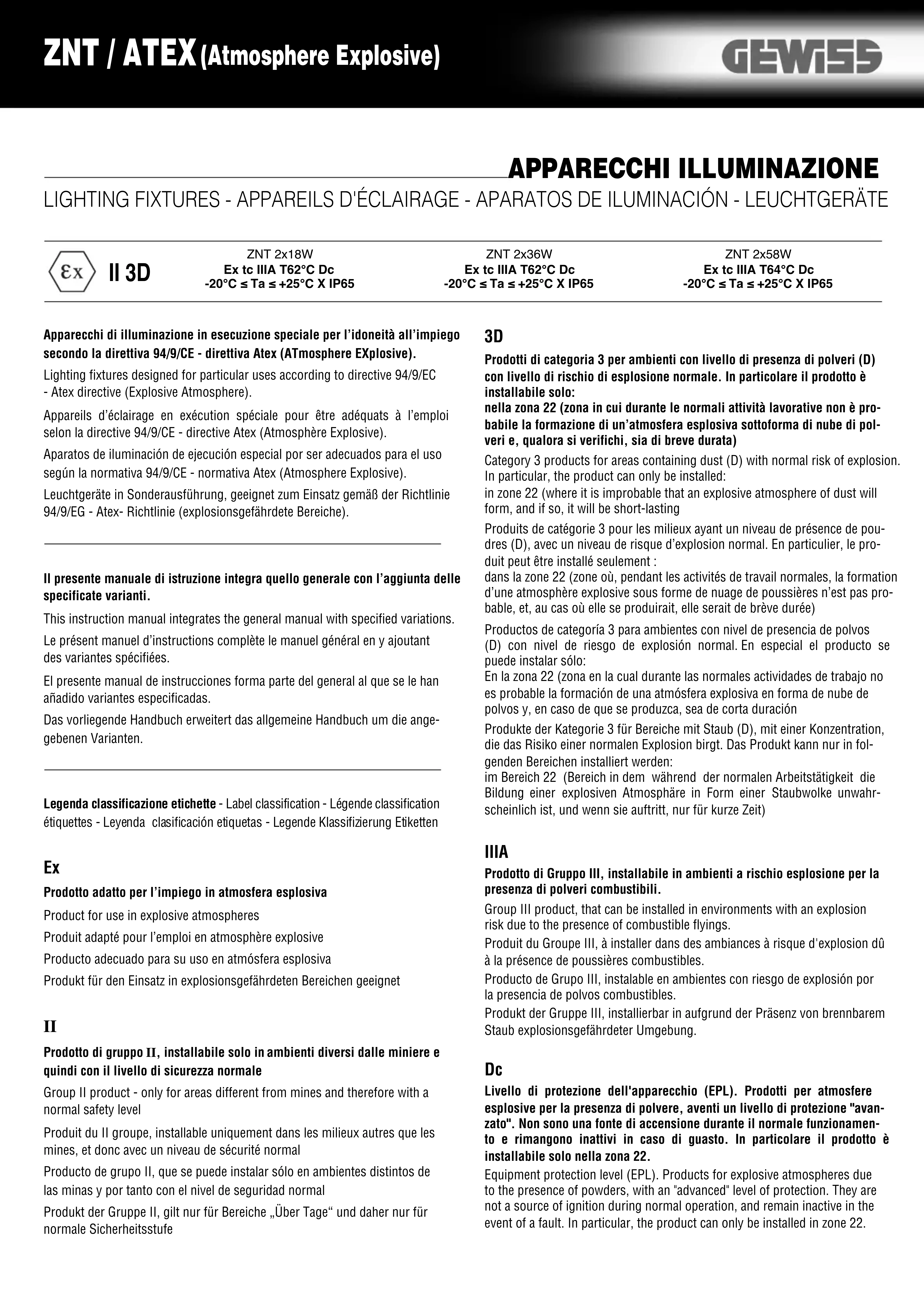 Appareils déclairage en exécution spéciale pour être ajustés à l'emploi selon la directive 94/9/CE - directive Atex (Atmosphère Explosive).
