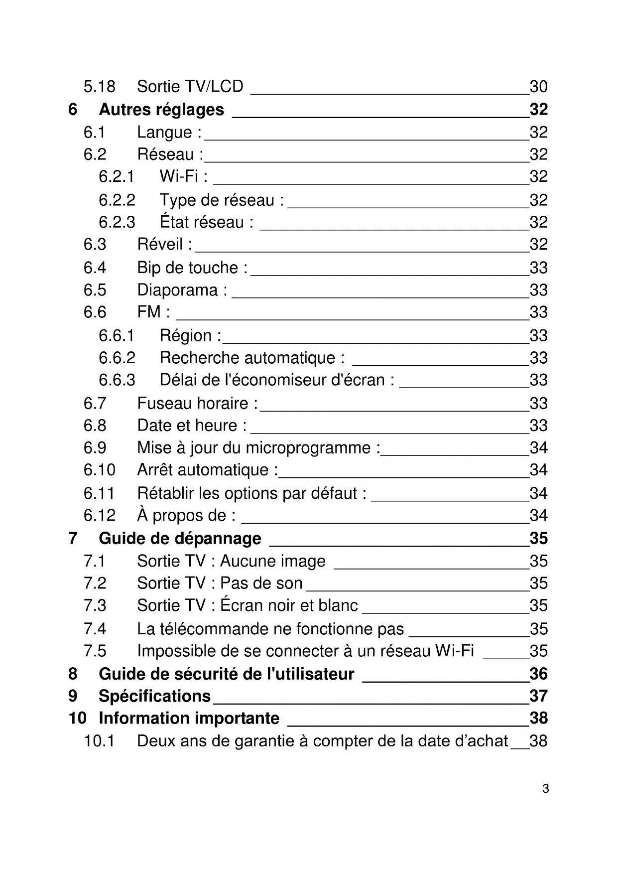 10.1 Deux ans de garantie a compter de la date d'achat 38