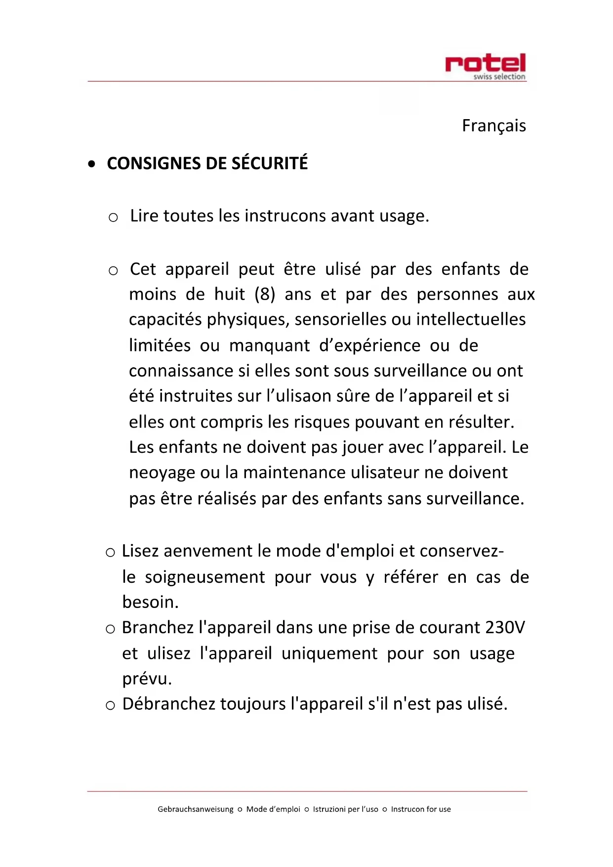 - Lisez aenvement le mode d'emploi et conservez-le soigneusement pour vous y reférer en cas de besoin.
