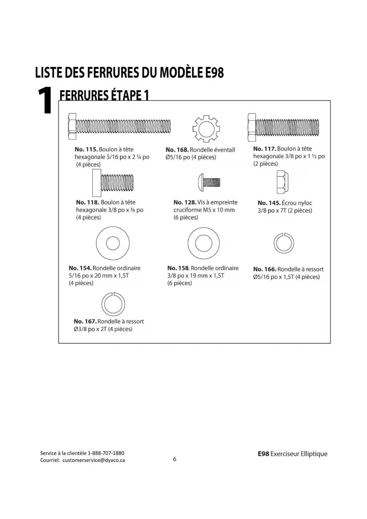 - Pour toute question concernant votre nouveau produit ou la garantie, communiquez avec Dyaco Canada Inc. en composant le 1-888-707-1880.