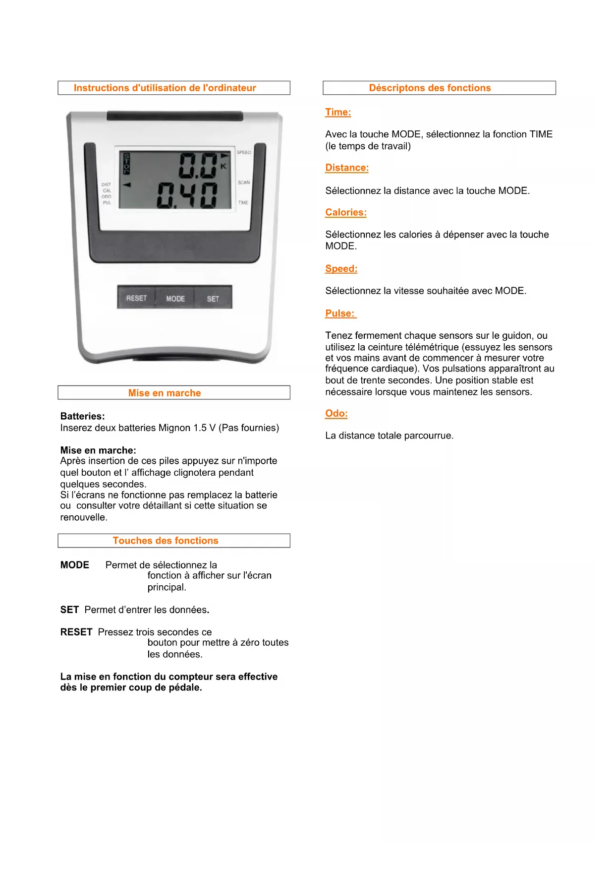 Dans le cas où vous n'auriez pas praticé des sport depuis longtemps, veuillez consultier votre médecin avant de commencer un programme d'entrainment.