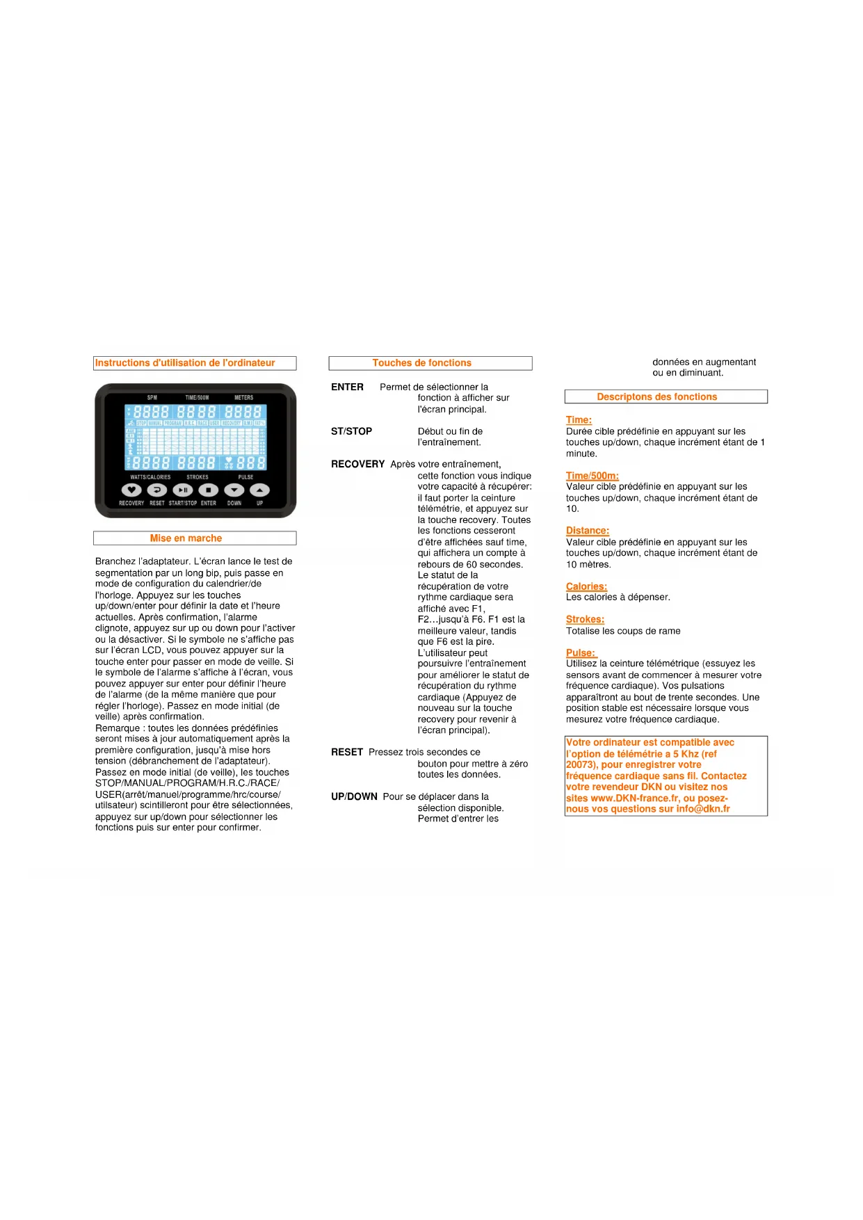 Votre ordinateur est compatible avec l'option de telemétrie a 5 Khz (ref 20073), pour enregistrer voire frequencerie cardiaque sans fil.Contactez voire revendeur DKN ou visitez nos sites www.DKN-france.fr, ou posez-nous voies questions sur Info@dkn.fr