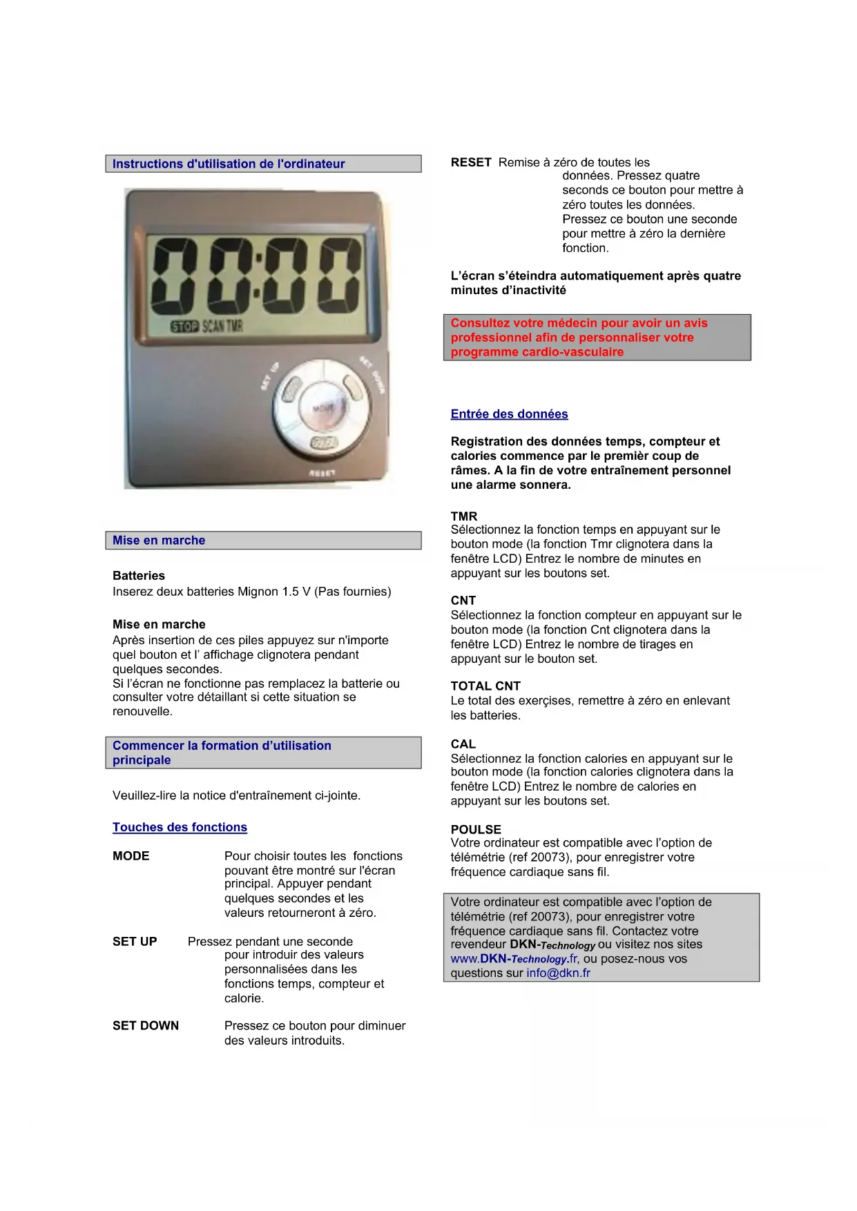 Votre ordinateur est compatible avec l'option de telémétrie (ref 20073), pour enregistrer votre fréquence cardiaque sans fil. Contactez cette revendeur DKN-Technology ou visitez nos sites www.DKN-Technology.fr, ou posez-nous vos questions sur info@dkn.fr