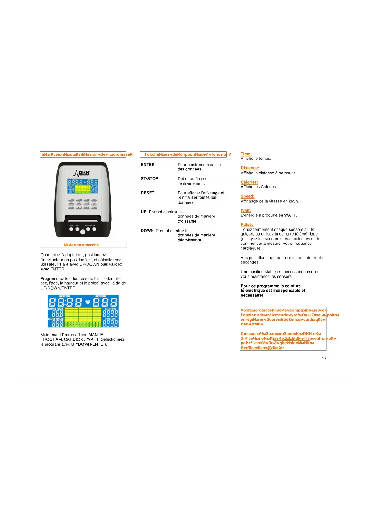 - Ajustez la résistance (32 niveaux de difficultités) avec UP/DOWN.