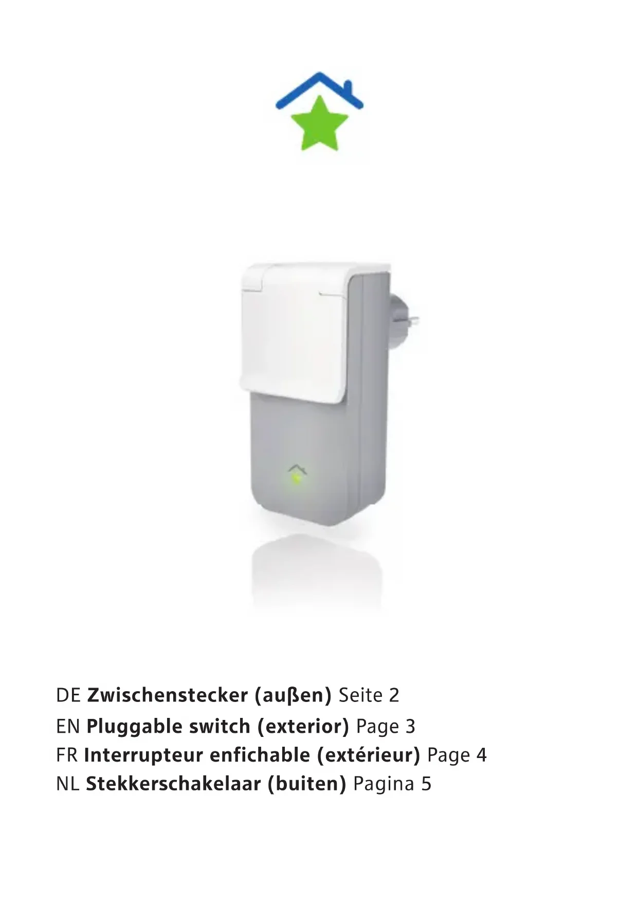 Après avoir été branché dans la prise aisément accessible, l'interrupteur enchachieable (extérieur) tente, pendant trois minutes, des'intégrer automatiquement (la LED clignote brievement toutes les dix secondes). Ajouter l'appareil au système SmartHome par le biais du logiciel utilisateur. Lorsque l'intérupteur enchachieable (extérieur) a été reconnu et intégré, la LED reste alluméependant env. 2 secondes.