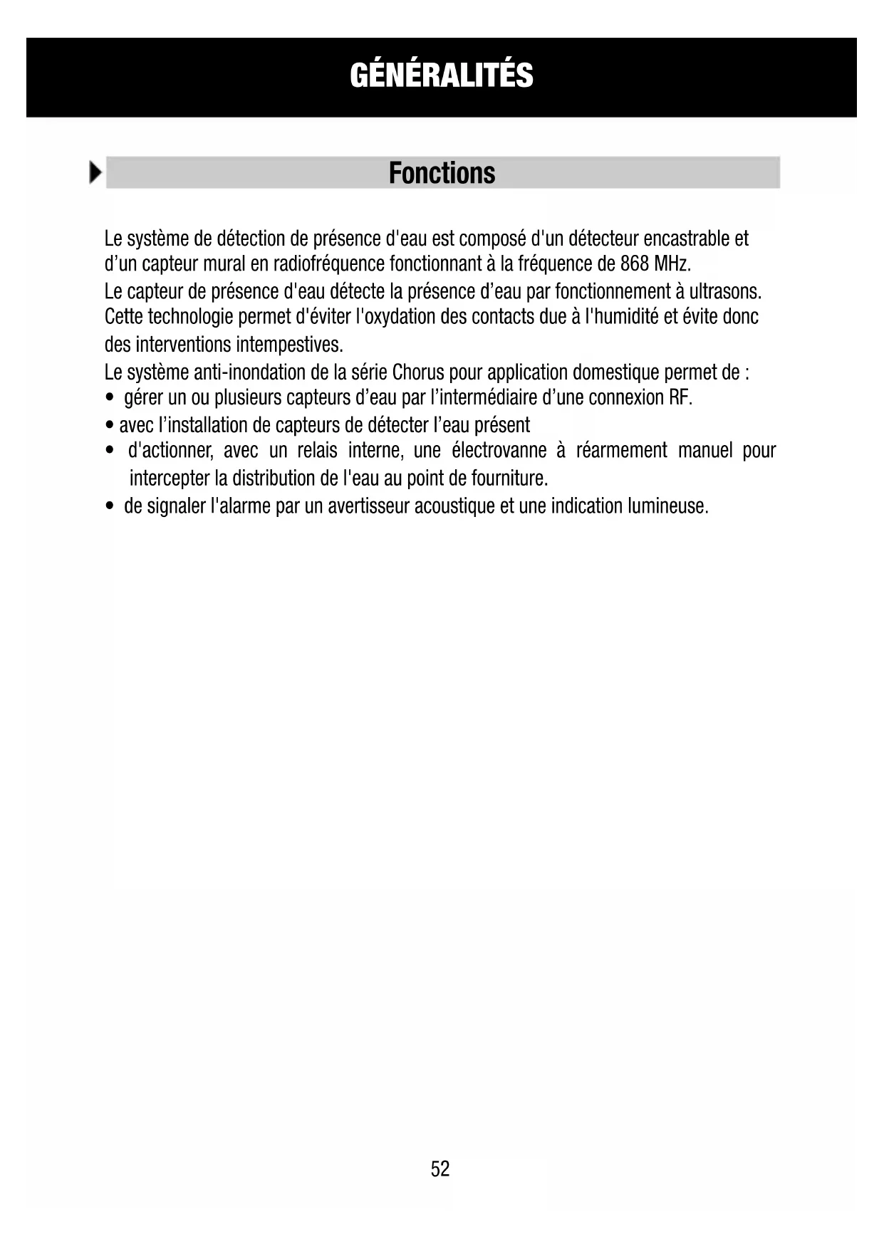 Le système de détection de présence d'eau est composé d'un détecteur encastrable et d'un capteur mural en radiofréquence fonctionnant à la fréquence de 868 MHz.